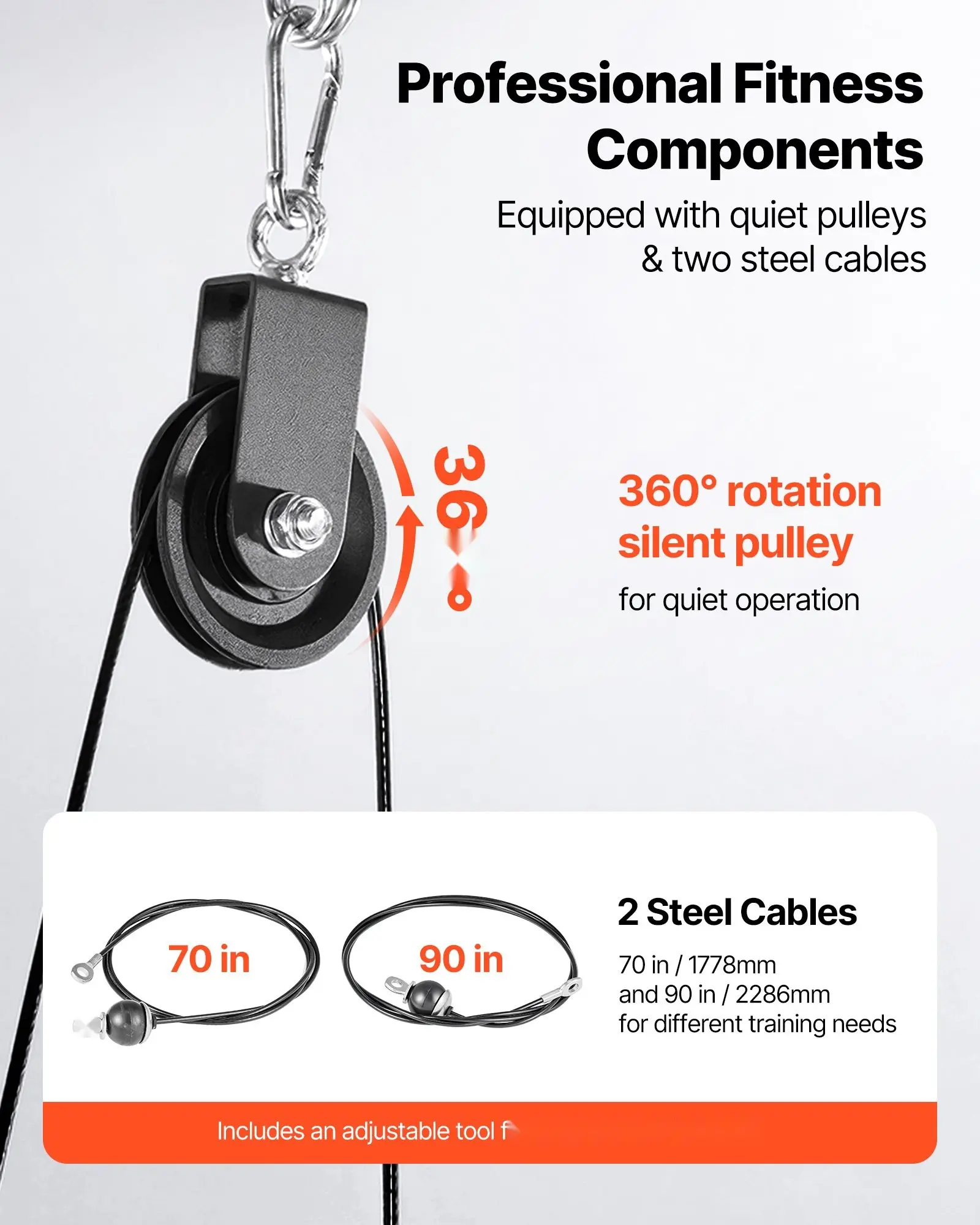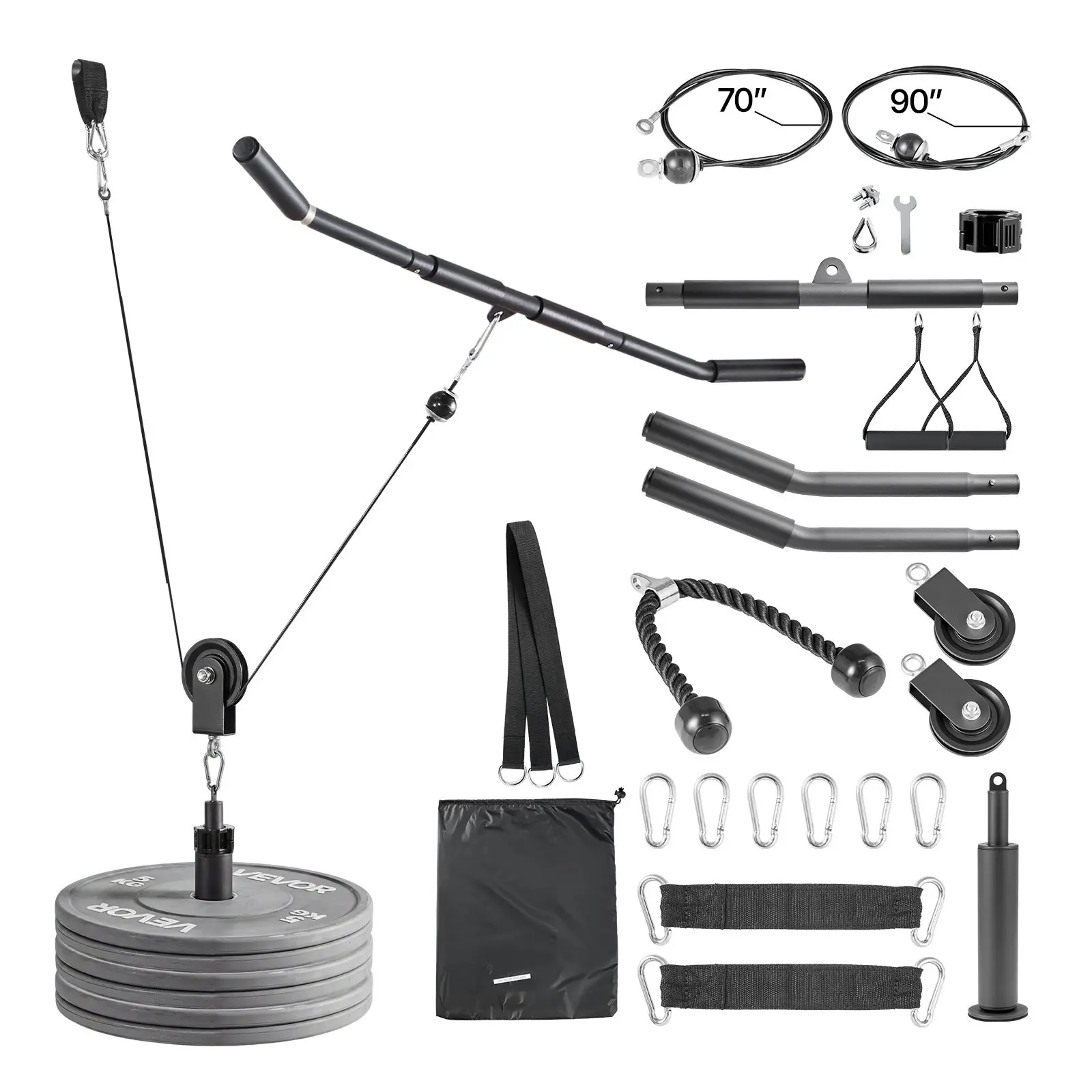 ·Versatile Fitness Companion: This gym pulley system includes 2 rotating pulleys, 6 carabiners, and double accessory sets for more training options. The 159-inch 2-in-1 bar and multi-length cable enable flys, pull-downs, rows, and 15+ pro-level exercises