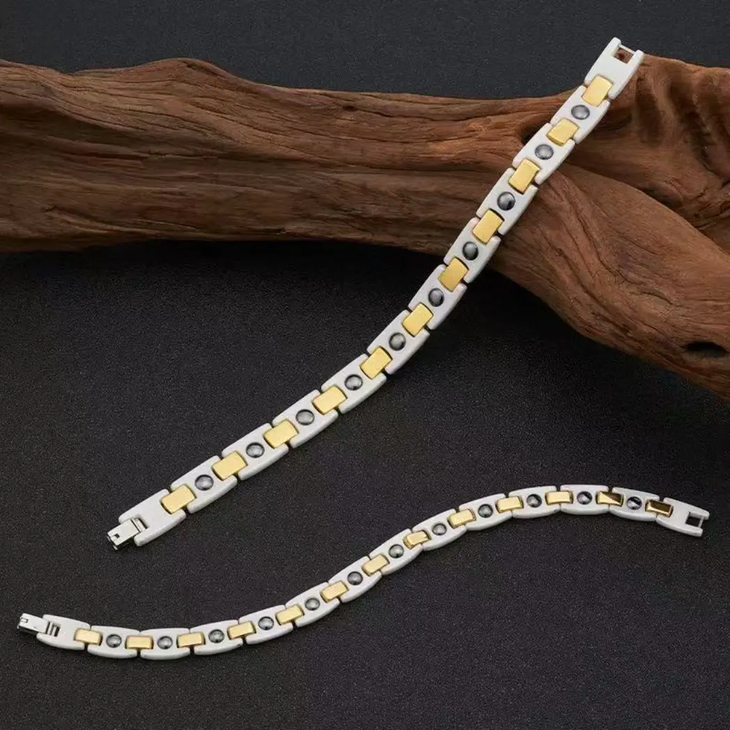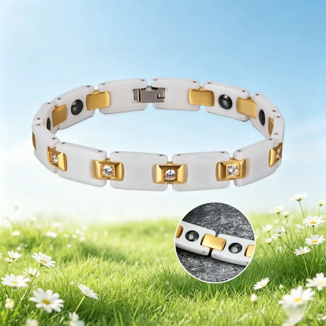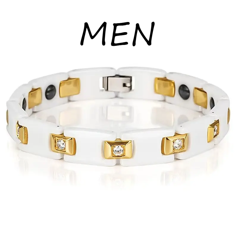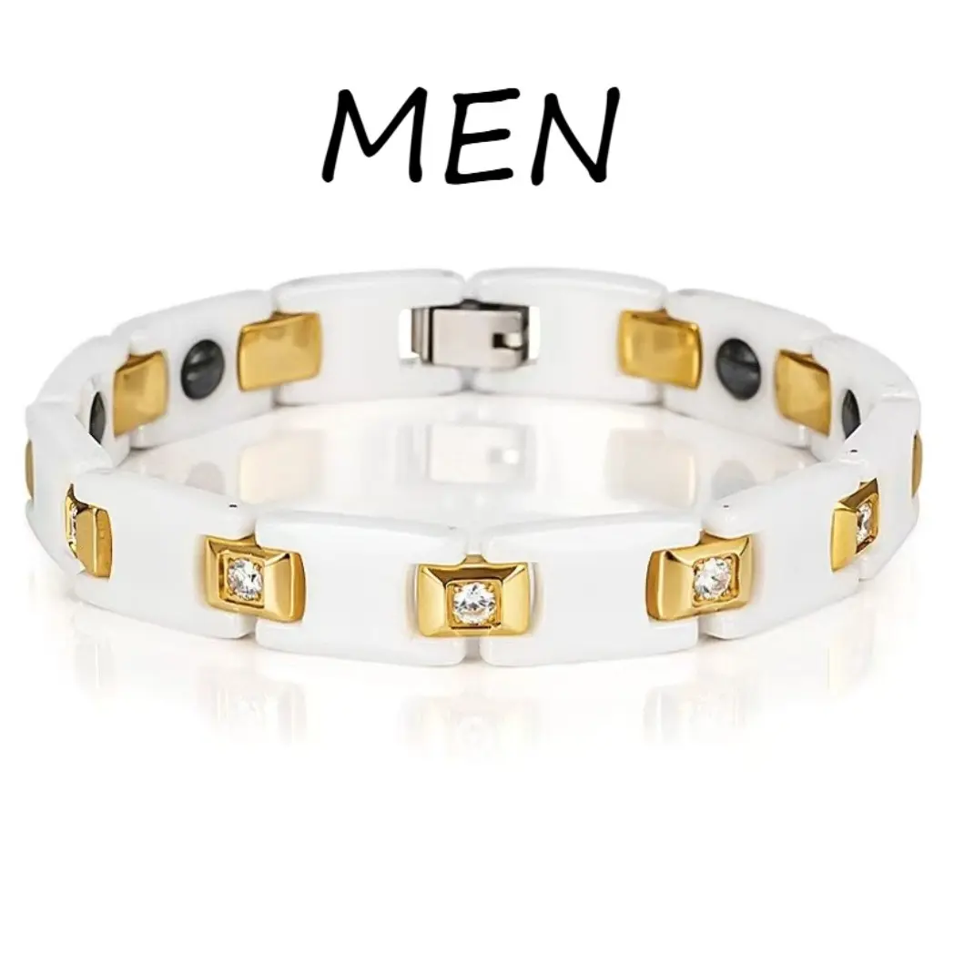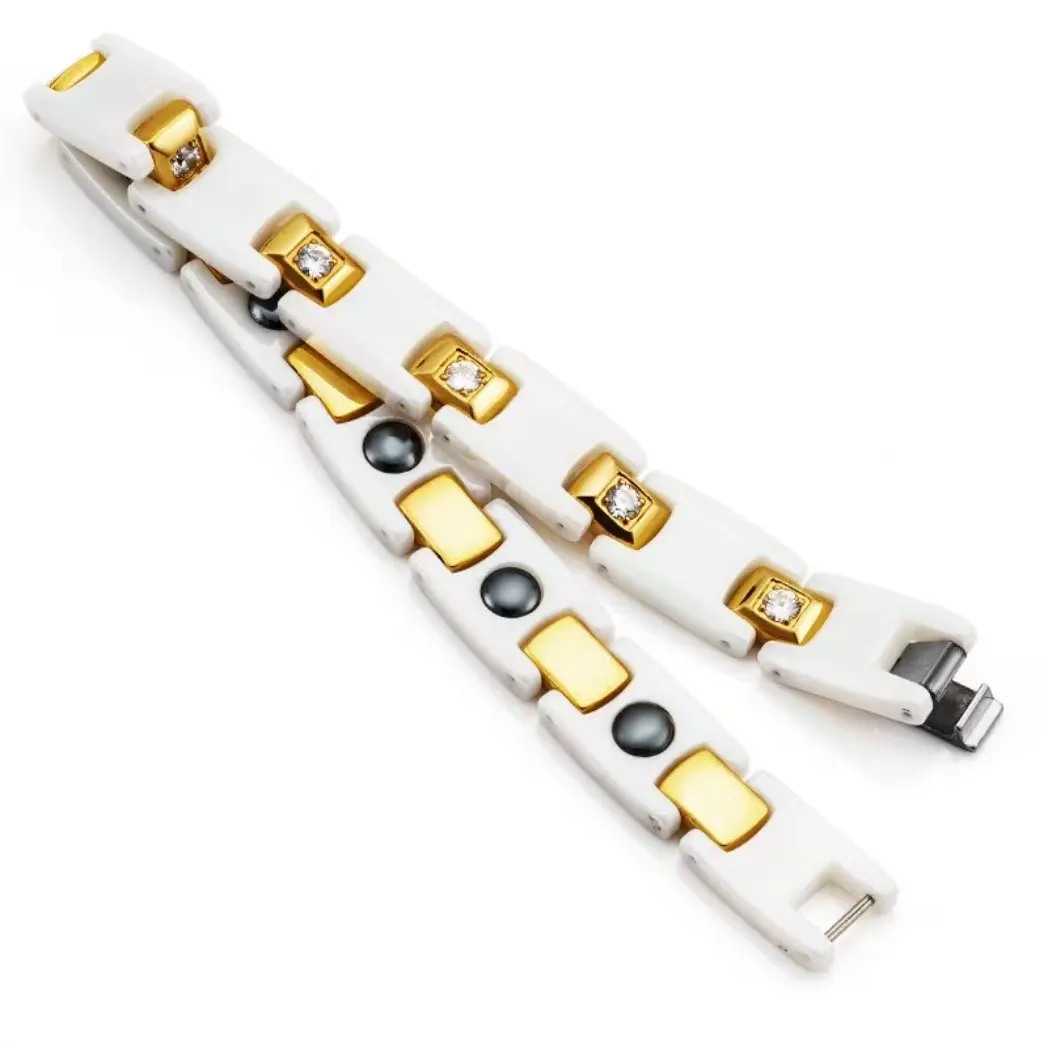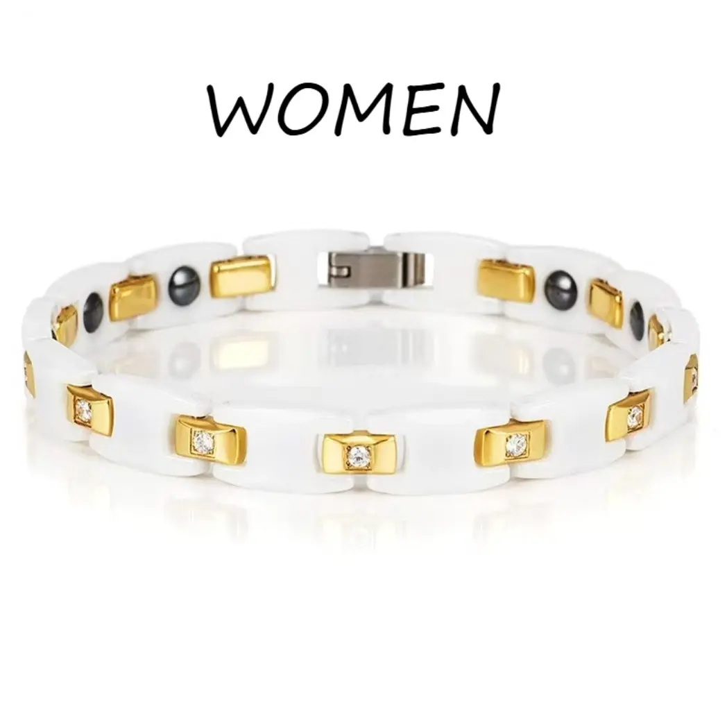 Men Women's Ceramic Bracelet, Health Energy Hematite Bracelet, Gold Tone AAA Cubic Zirconia Wrist Chain for Ladies