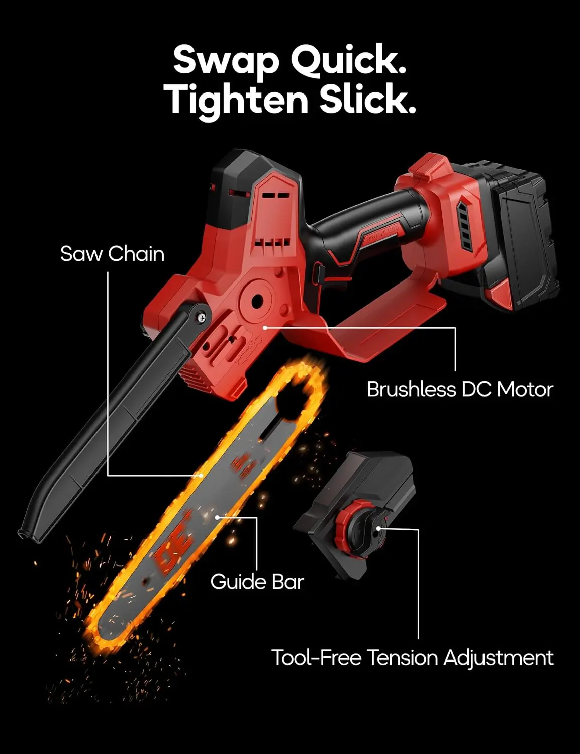 8" Cordless Mini Chainsaw, Portable Electric Chainsaw for Milwaukee M18 Battery, Brushless Electric Power Pruner with Auto Oiler & Auto-Tension, Handheld Power Chain Saw for Tree Trimming and Wood Cutting (Tool Only)
