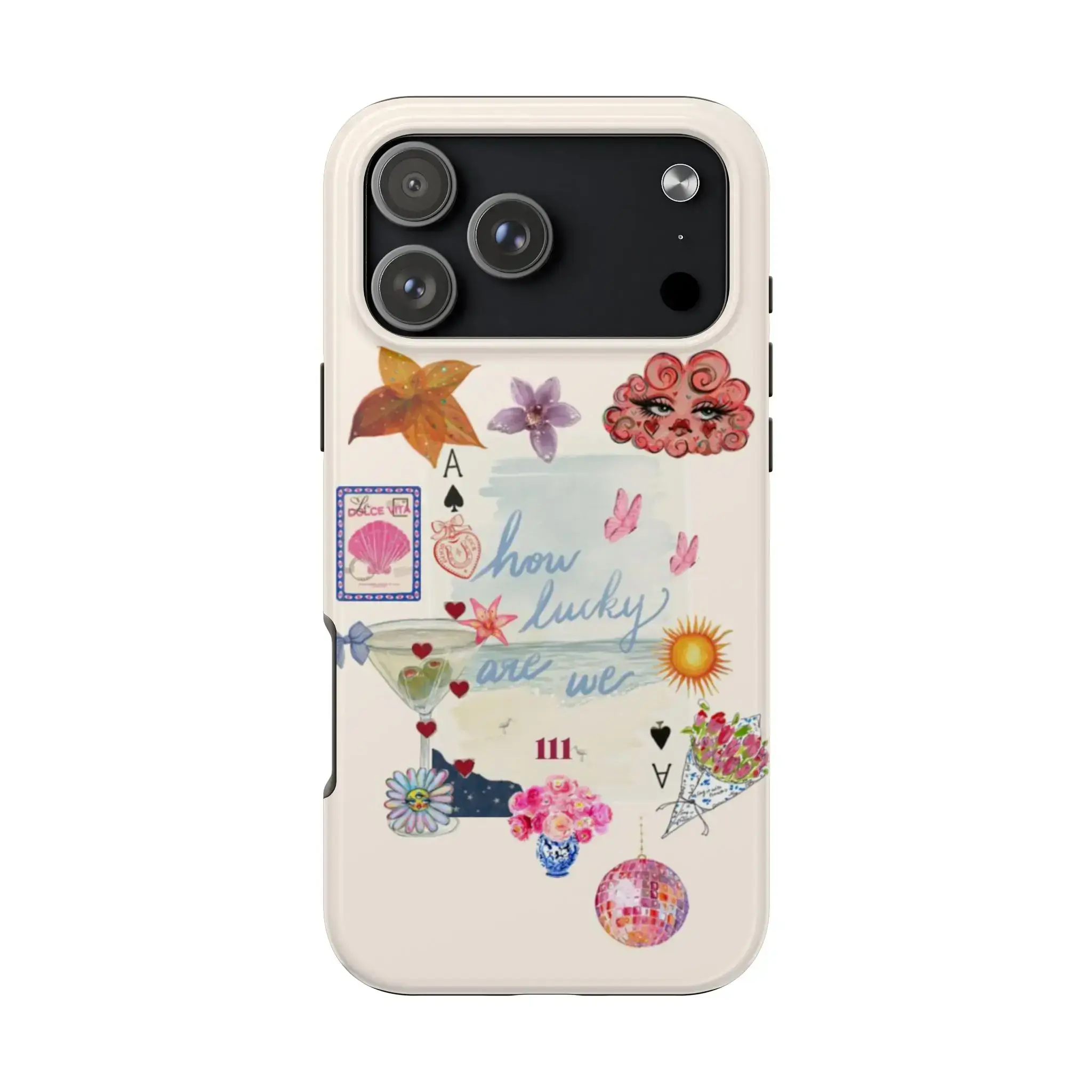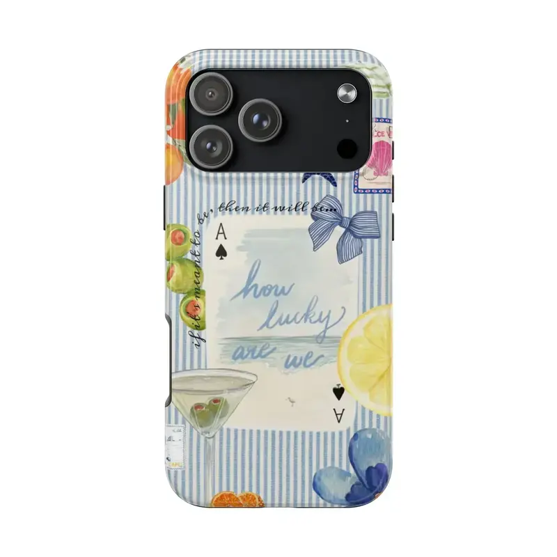 Vintage How Lucky Are We Phone Case, Stripes Coquette Preppy and Cute For iPhone 11-17