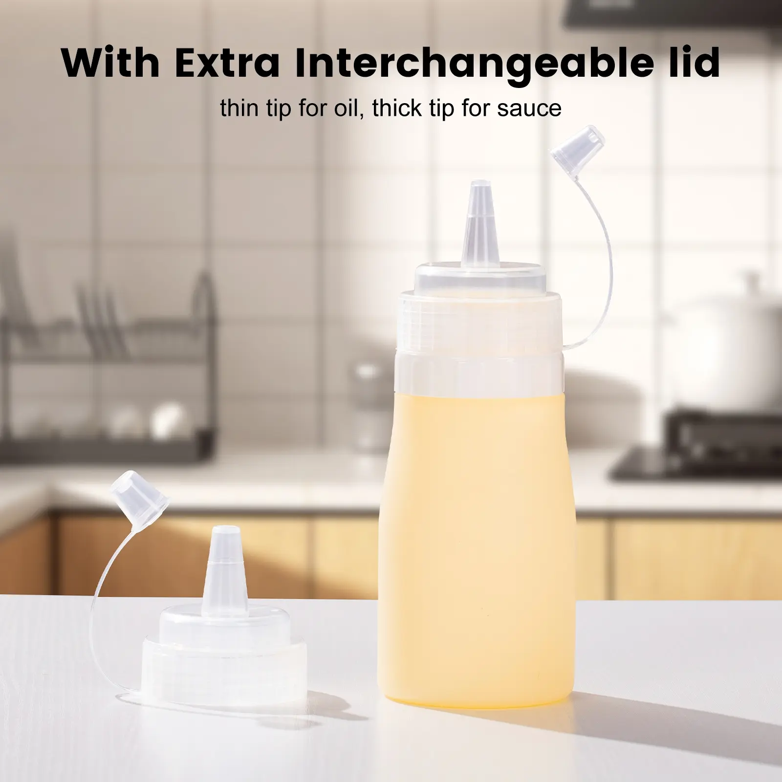 Leak-proof Cap: condiment squeeze bottles are built with a high-tech leak-proof design. Perfect as oil bottle, syrup bottle, oil dispenser, salad dressing bottle, ketchup squirt bottle.