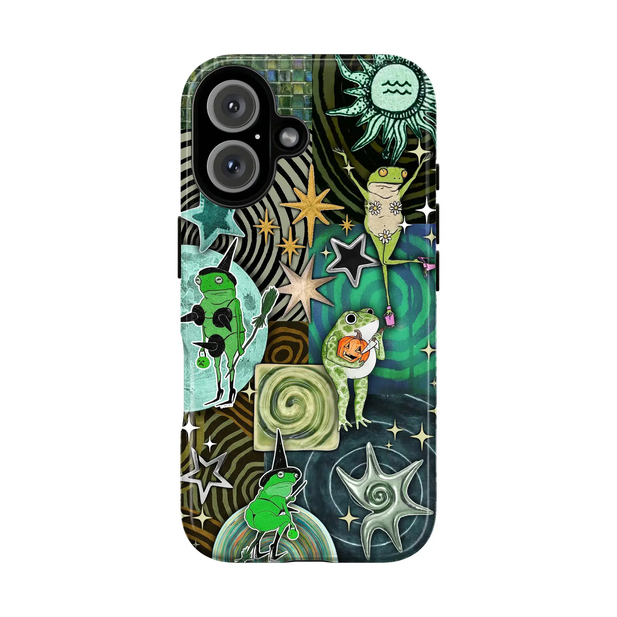 Trippy Frog Phone Case Whimsical Retro Collage Aesthetic Protective Cover for iPhone