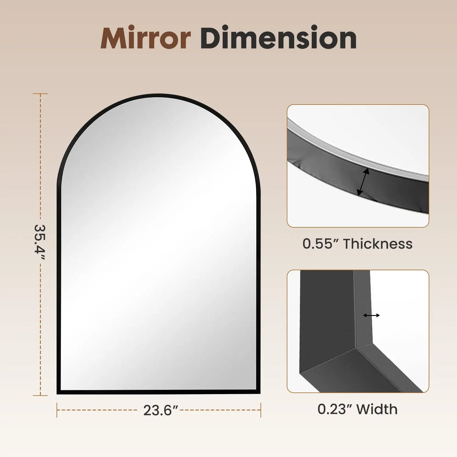 Timeless Arched Design & Premium Decor]: Elevate your interior with our chic arched vanity mirror, featuring a gracefully curved top and a sleek, slim metal frame. This design brightens rooms by reflecting more light, creating an airy, spacious feel. It serves as a stunning statement piece that adds instant sophistication and boutique-inspired elegance to modern bathrooms, chic entryways, cozy bedrooms, living rooms, or commercial spaces.[Durable & Humidity-Resistant Construction]: Built for long-lasting performance in moist environments. The frame is constructed from high-quality, rust and corrosion-resistant aluminum alloy, ensuring it thrives in steamy bathrooms or humid climates. Combined with a protective anti-fog coating, this mirror maintains its clarity and structural integrity season after season, preventing deterioration.[Safe HD Explosion-Proof Glass for Crystal Clarity]: Engineered with your family's safety in mind. This mirror features high-definition, tempered safety glass that provides razor-sharp, distortion-free