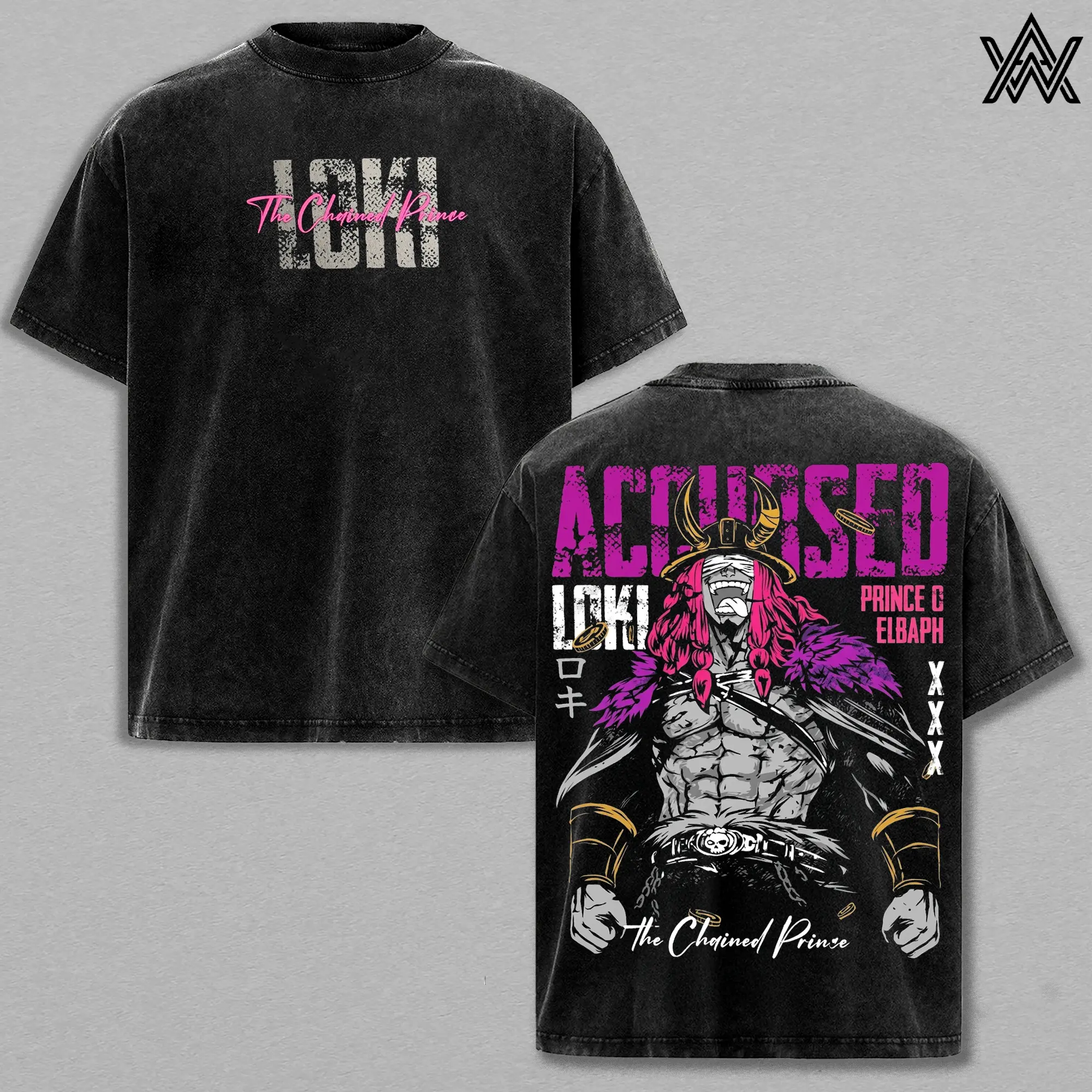 Loki Tee Washed – One Piece Washed Anime Manga T-Shirt, Vintage Washed Elbaf Giant Prince Graphic Tee, Unisex Oversized Streetwear Shirt, Nordic Warrior Anime Aesthetic Tee, Gift for One Piece Fans