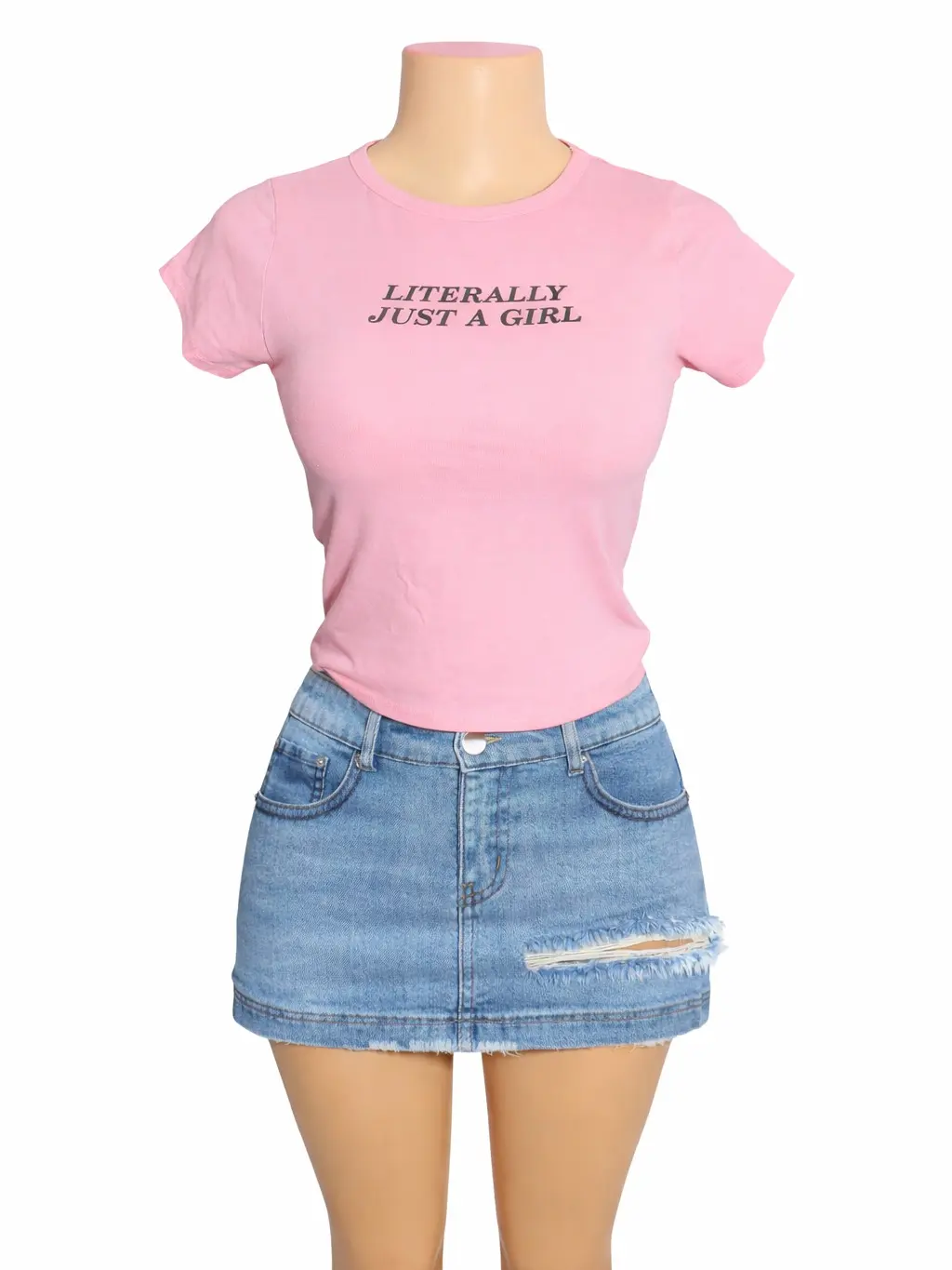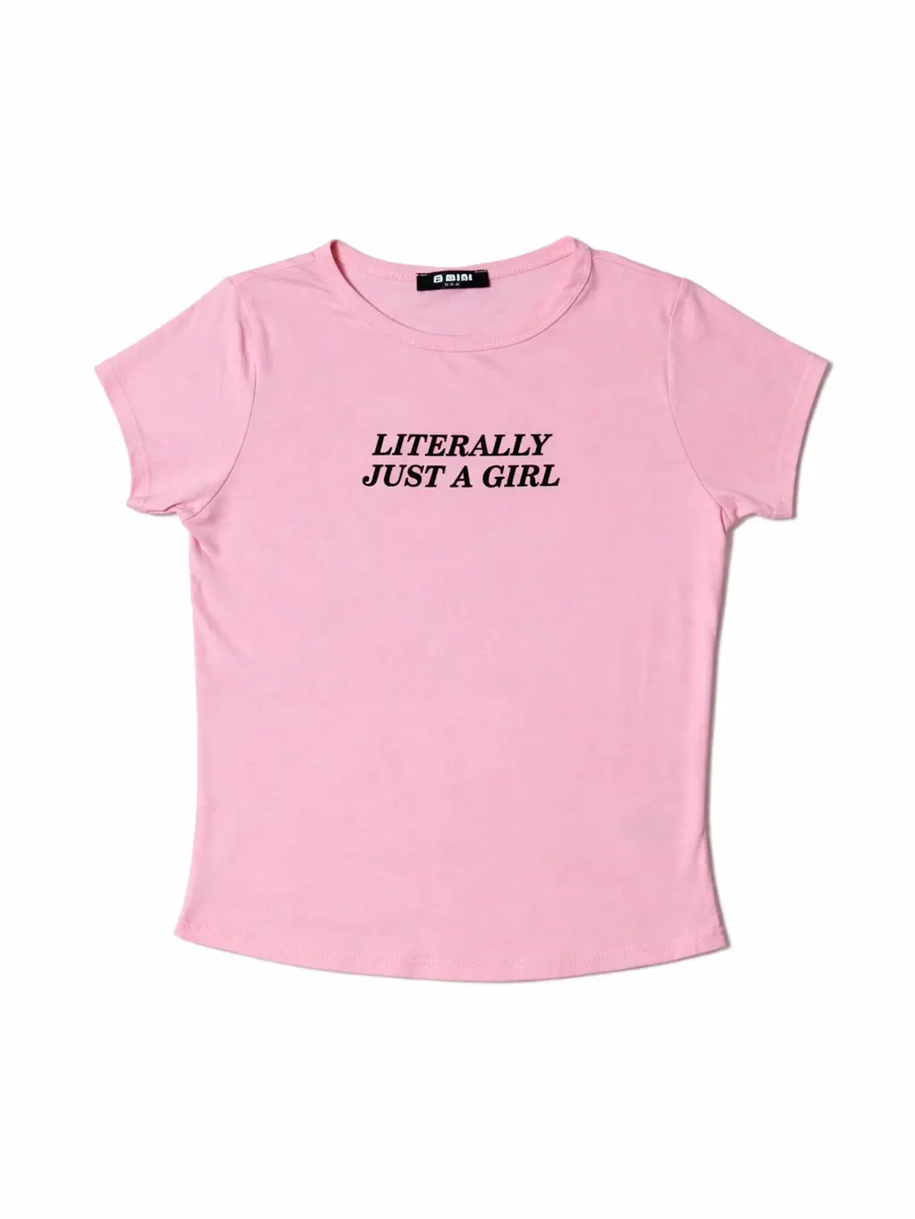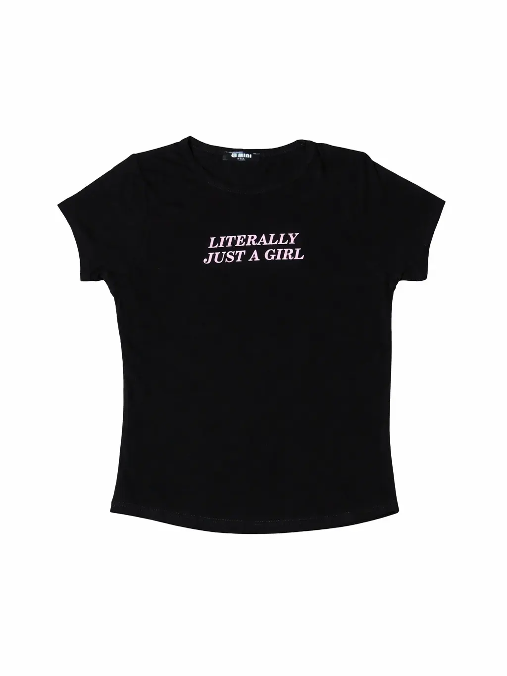 Soft, simple, and effortlessly iconic—this baby tee says it all. Featuring the bold yet minimal “Literally Just A Girl” graphic, this piece captures that confident, carefree energy with a touch of attitude.