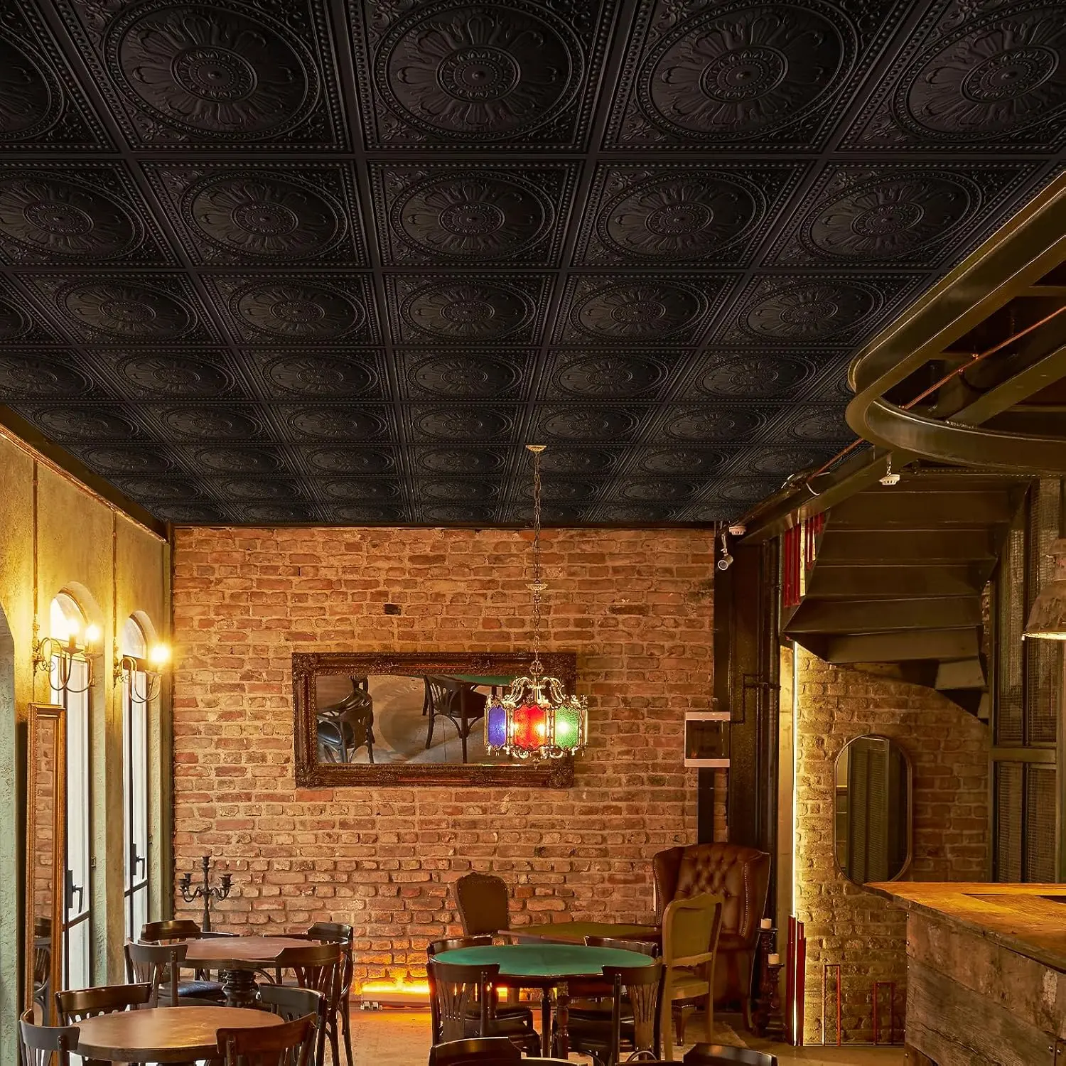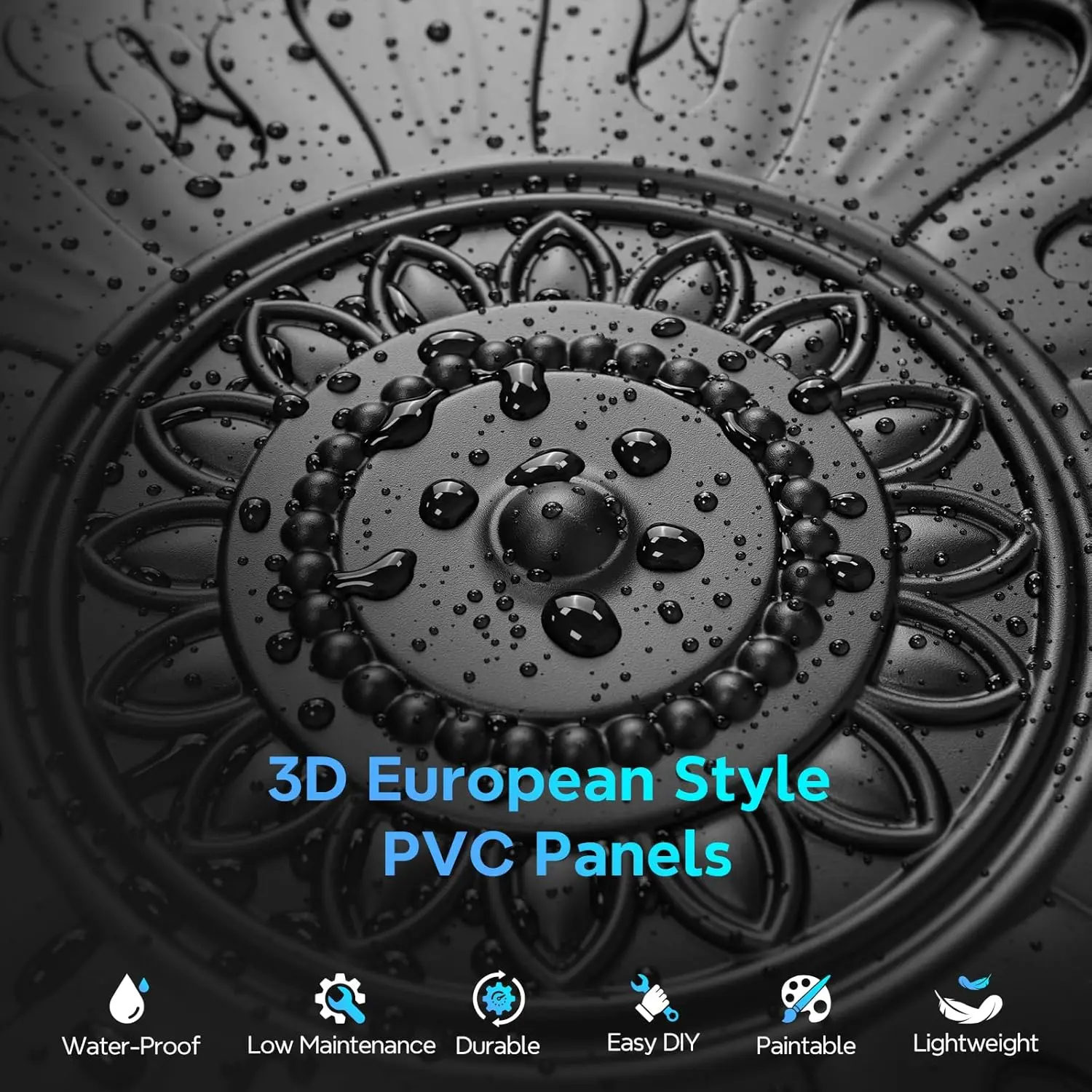 Drop Ceiling Tiles 24"x24", PVC Panels Ceiling Tiles Waterproof Reusable, Covers 48 Sq.Ft., Baroque Decorative Tiles for Home & Use (Pack of 12, Black)