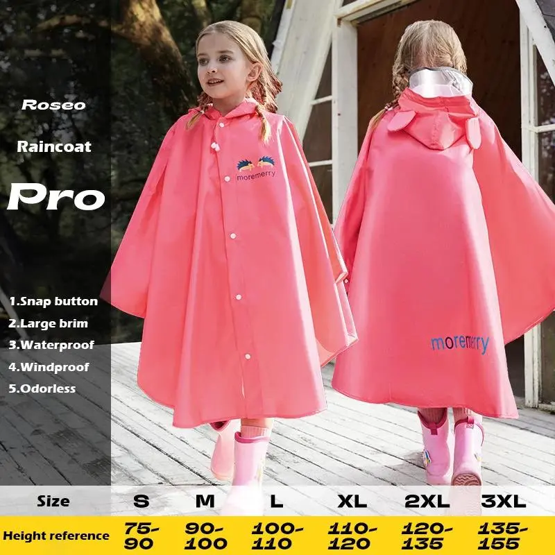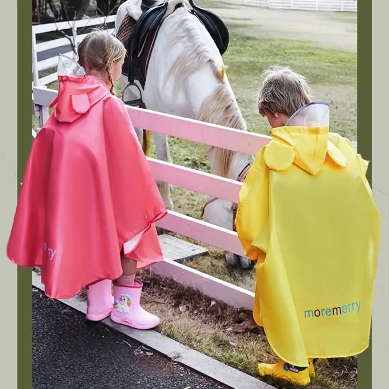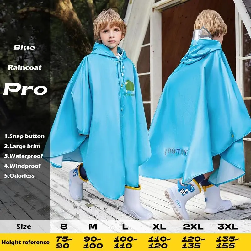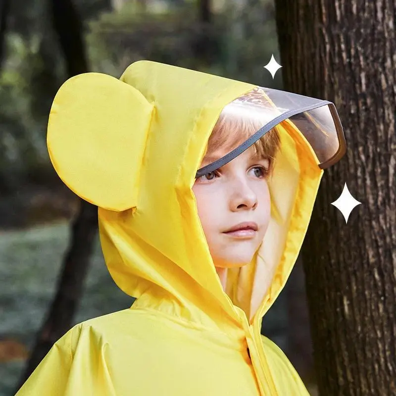 Cute Thicken Kids Cartoon Raincoat Ponchos Toddler Rain Jacket Children Rainwear with Large Brim Windproof Students Rain Suit