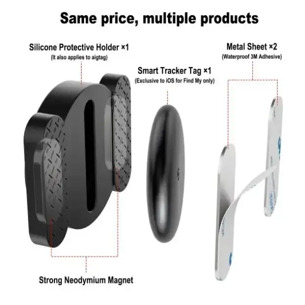 Size and Specifications:Locator measures 1.22 x1.22 x0.21 Inches.Package includes one locator, onekeychain case, and one magnetic case, both compatiblewith AirTag.