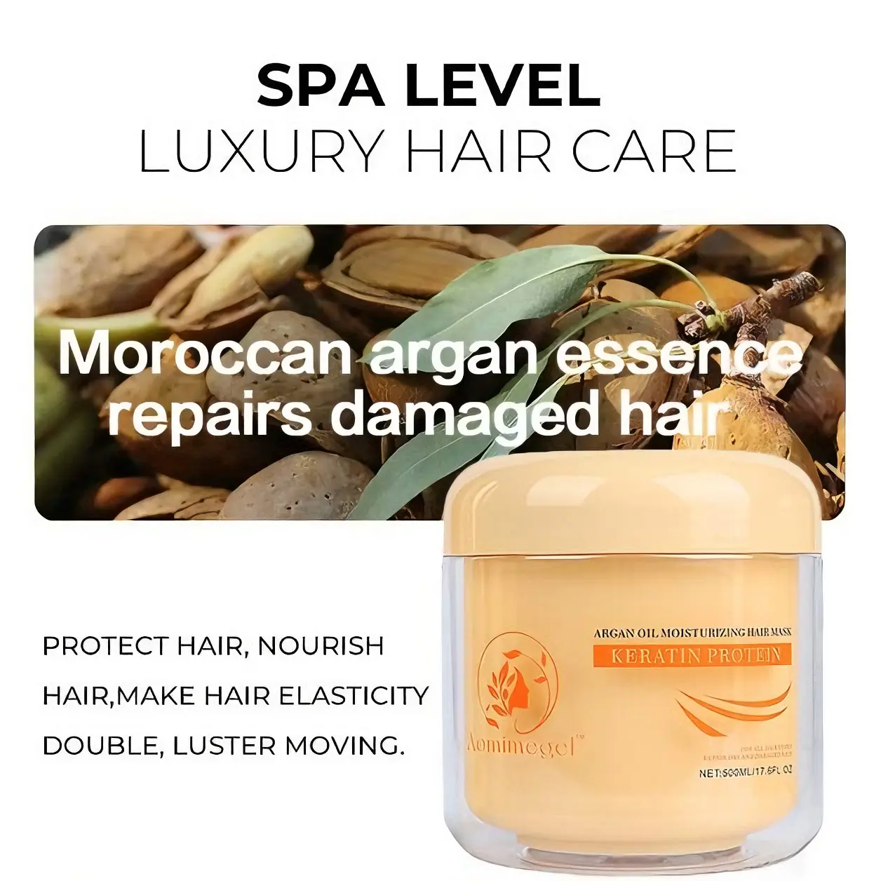 Infused with collagen and argan oil, this hair mask penetrates deeply to repair dry, damaged, and over-processed hair, restoring strength, softness, and elasticity from root to tip.