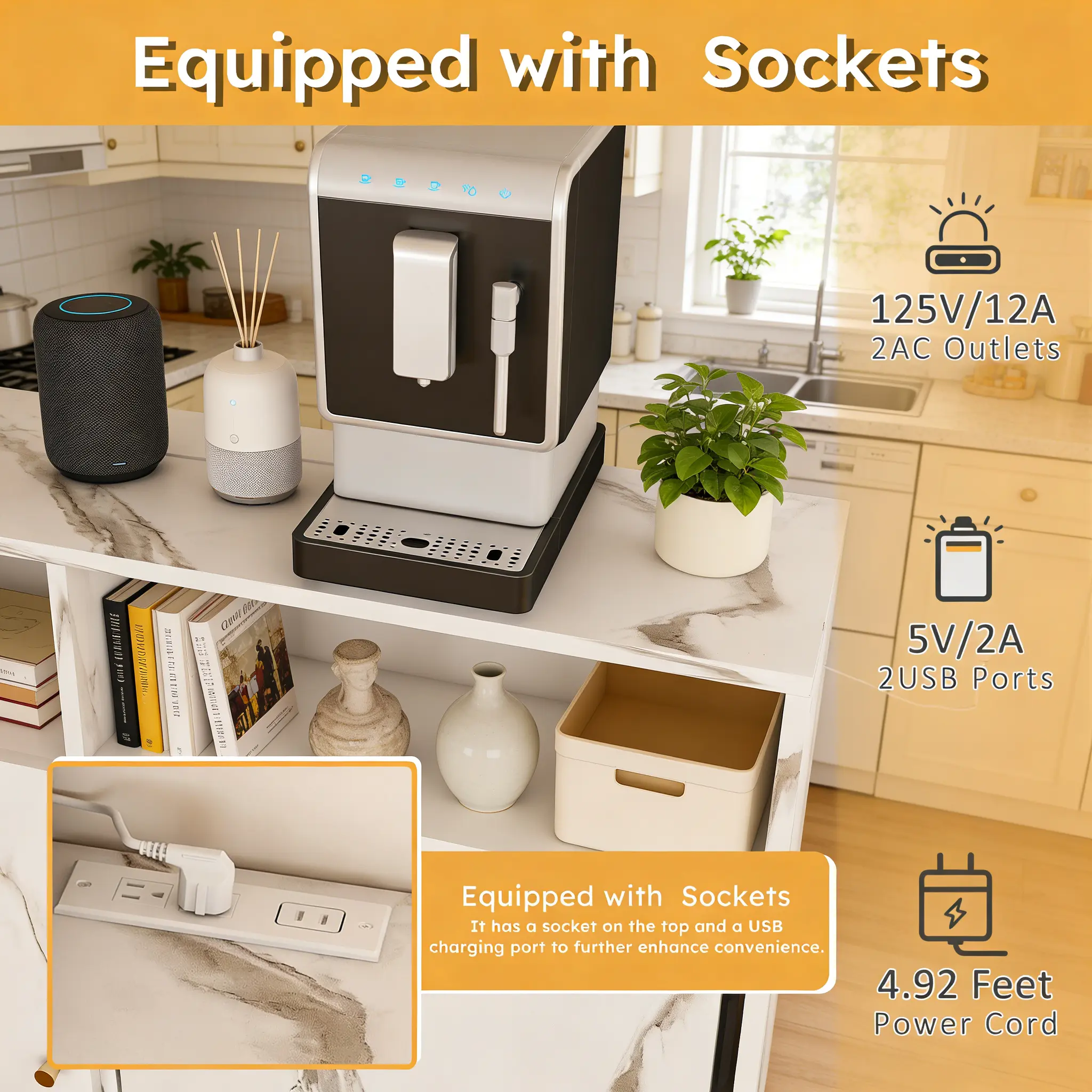 Built-in 4-in-1 Power Socket – 2 AC outlets + 2 USB ports to charge devices and power appliances directly on the sideboard.