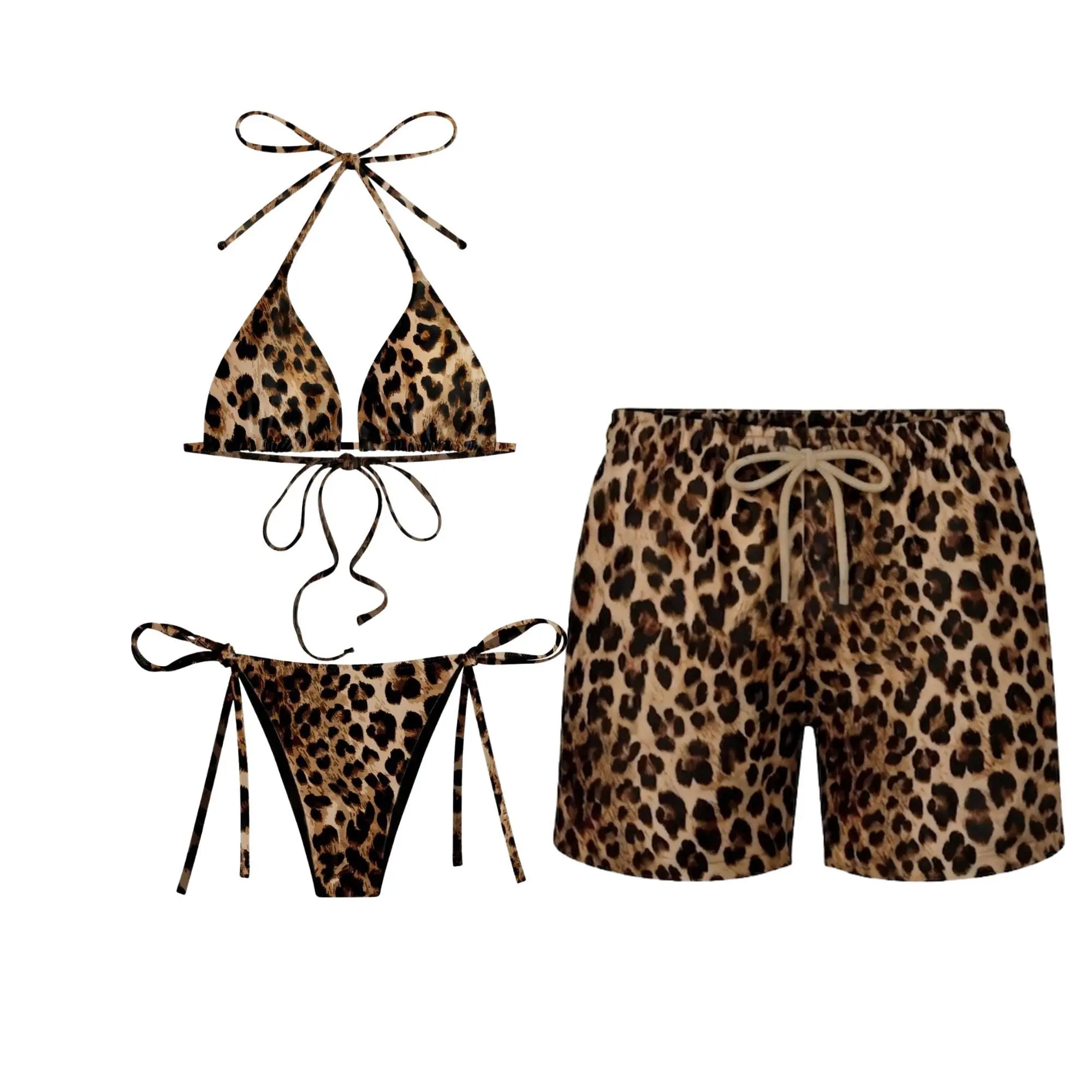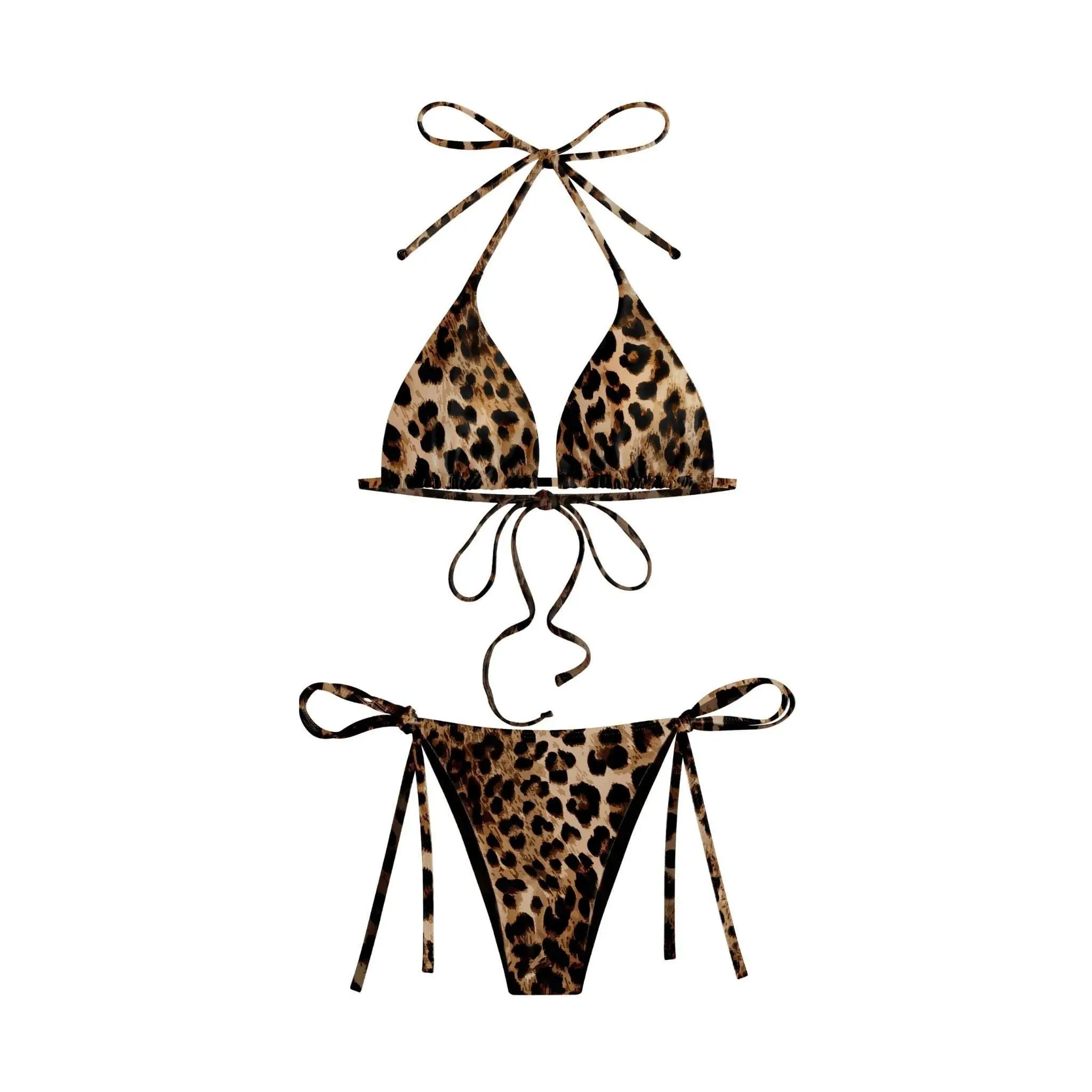 Classic triangle bikini top paired with matching string-tie bottoms