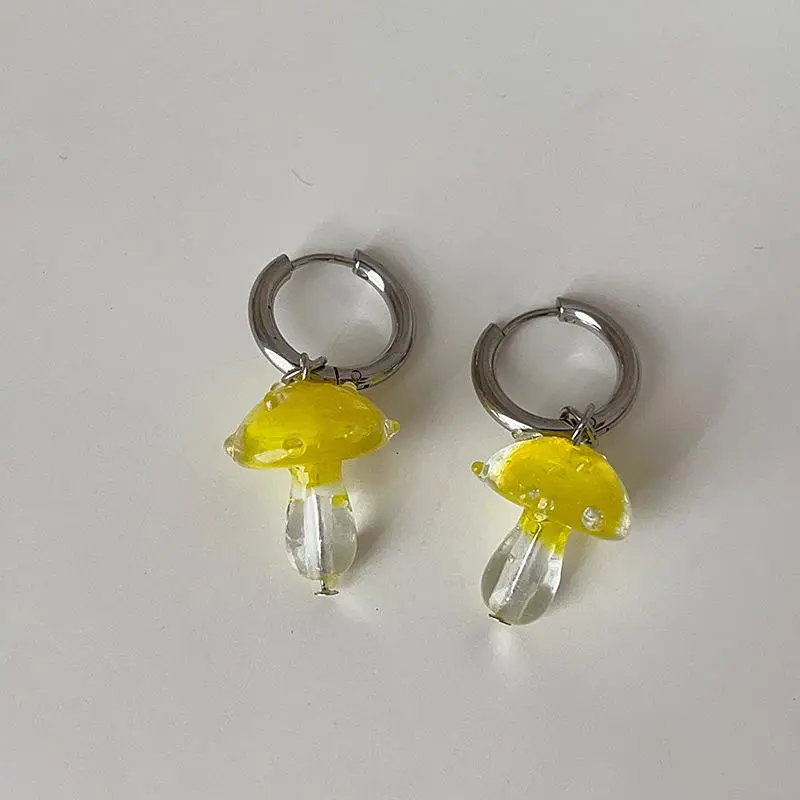 Minar Funny Contrast Color Coloured Glaze Crystal Mushroom Hoop Earrings for Women Silver Plated Metal Holiday Casual Jewelry