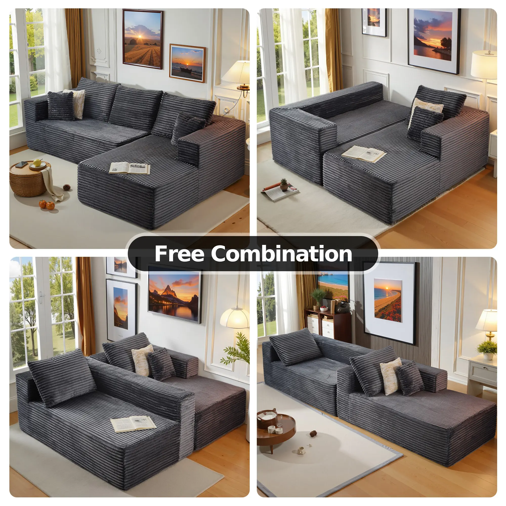·Modular Sectional Sofa: Discover the adaptability of our minimalist modular sofa, designed for flexible configurations to fit your lifestyle. This L-shaped sectional set is composed of three pieces, maximizing space efficiency when placed against a wall. Whether used as a sofa or sofa bed, it offers endless layout options to suit your comfort and style