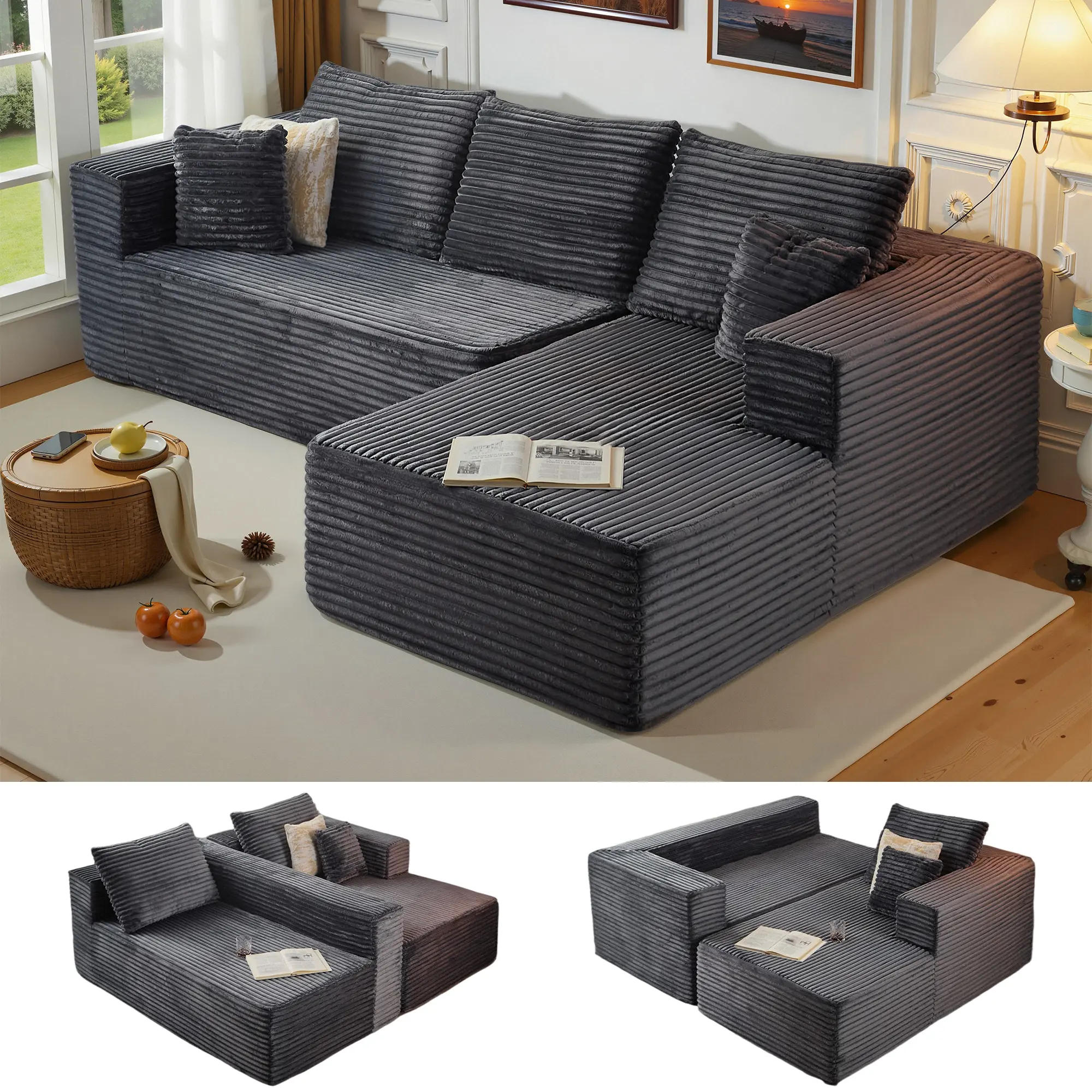 ·Comfy Boneless Couch:Features detachable lounge Chaise for sofa/sleeper modes. This Sectional sofa reconfigures in seconds - NO assembly required. Perfect for couch living room or bed living room transformations.
