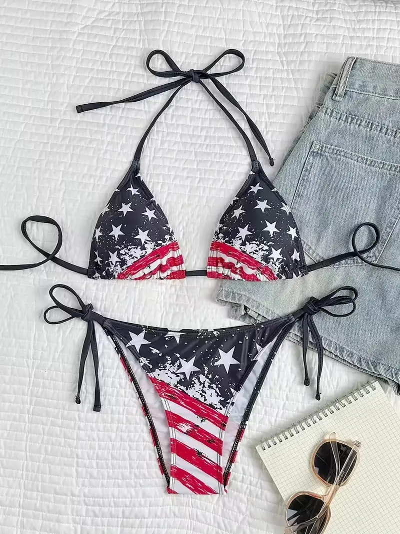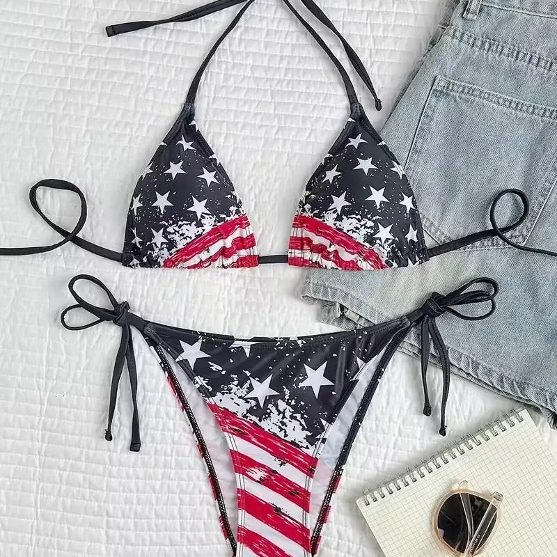5. 2pcs European and American split swimsuit for women, new sexy tight-fitting backless bikini for foreign trade