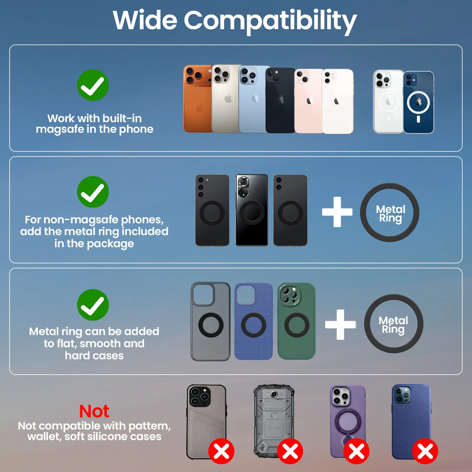 Snap Grip 5 - Modern Magnetic Phone Grip Stand & Mount for iPhone & Android 360° Rotation Kickstand, Adhesive-Free Design
