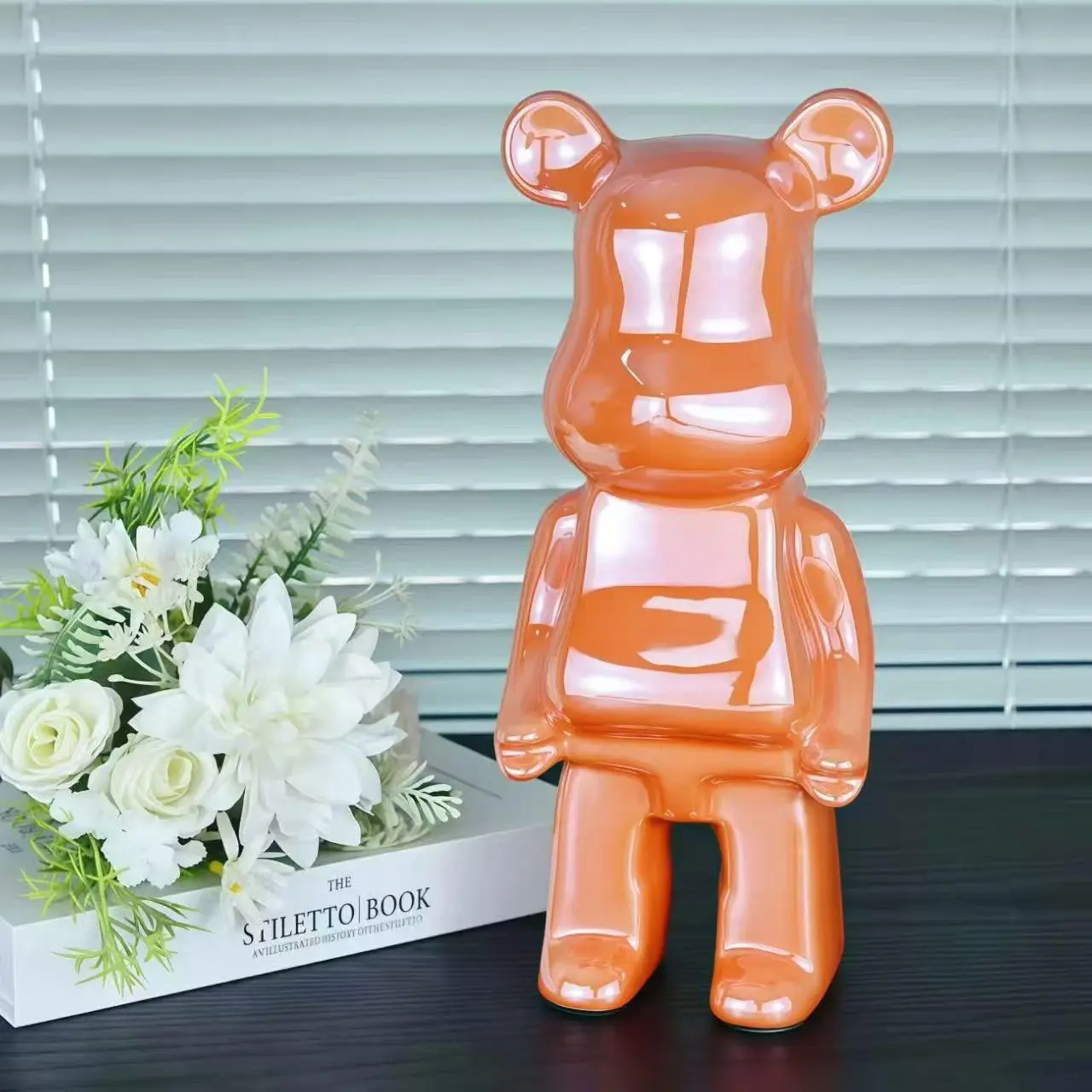 28cm Aesthetic Bear Figure Ceramics Plating Violent Bear Statue Animal Figurine Sculpture Luxury Living Room Decoration Ornament