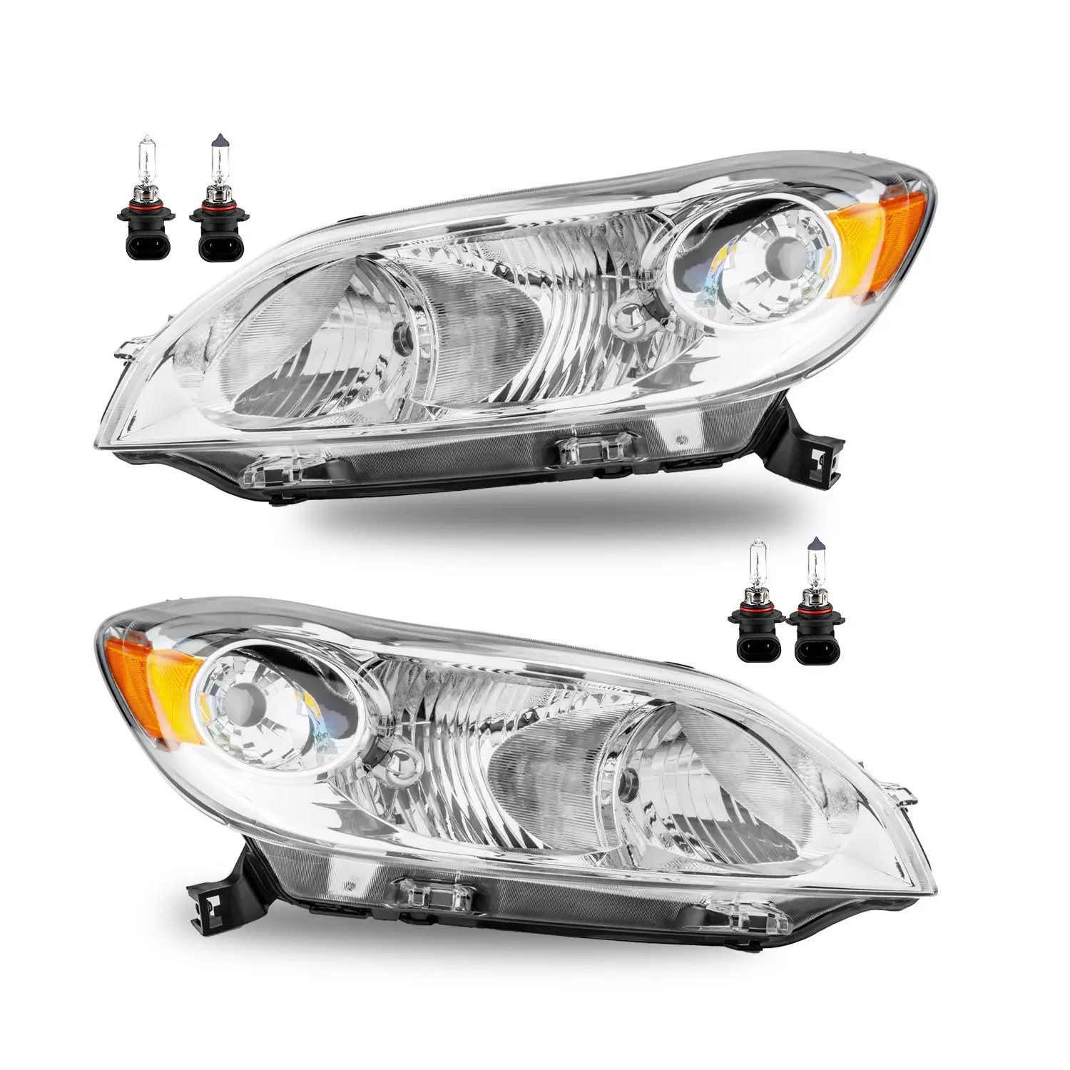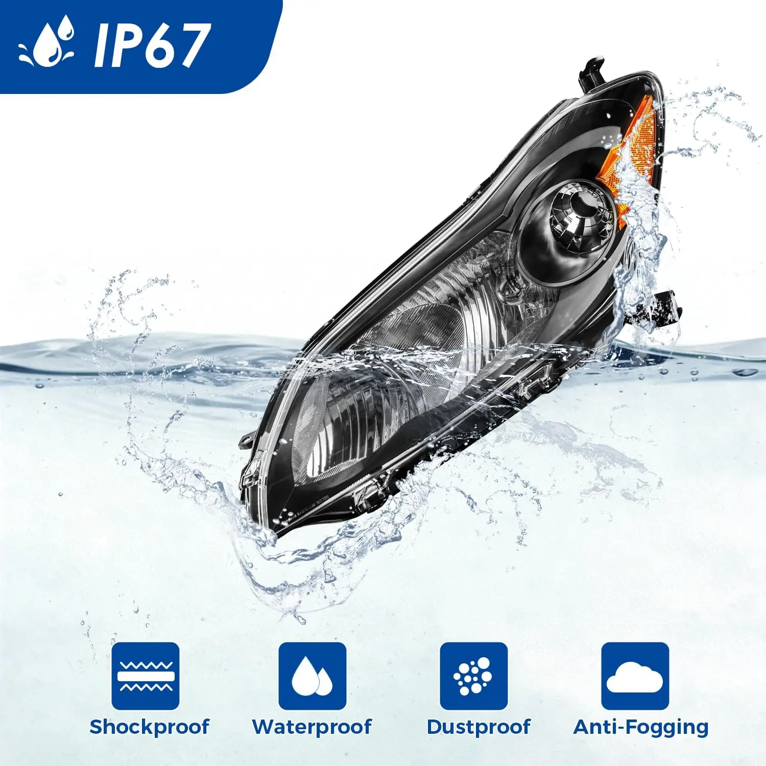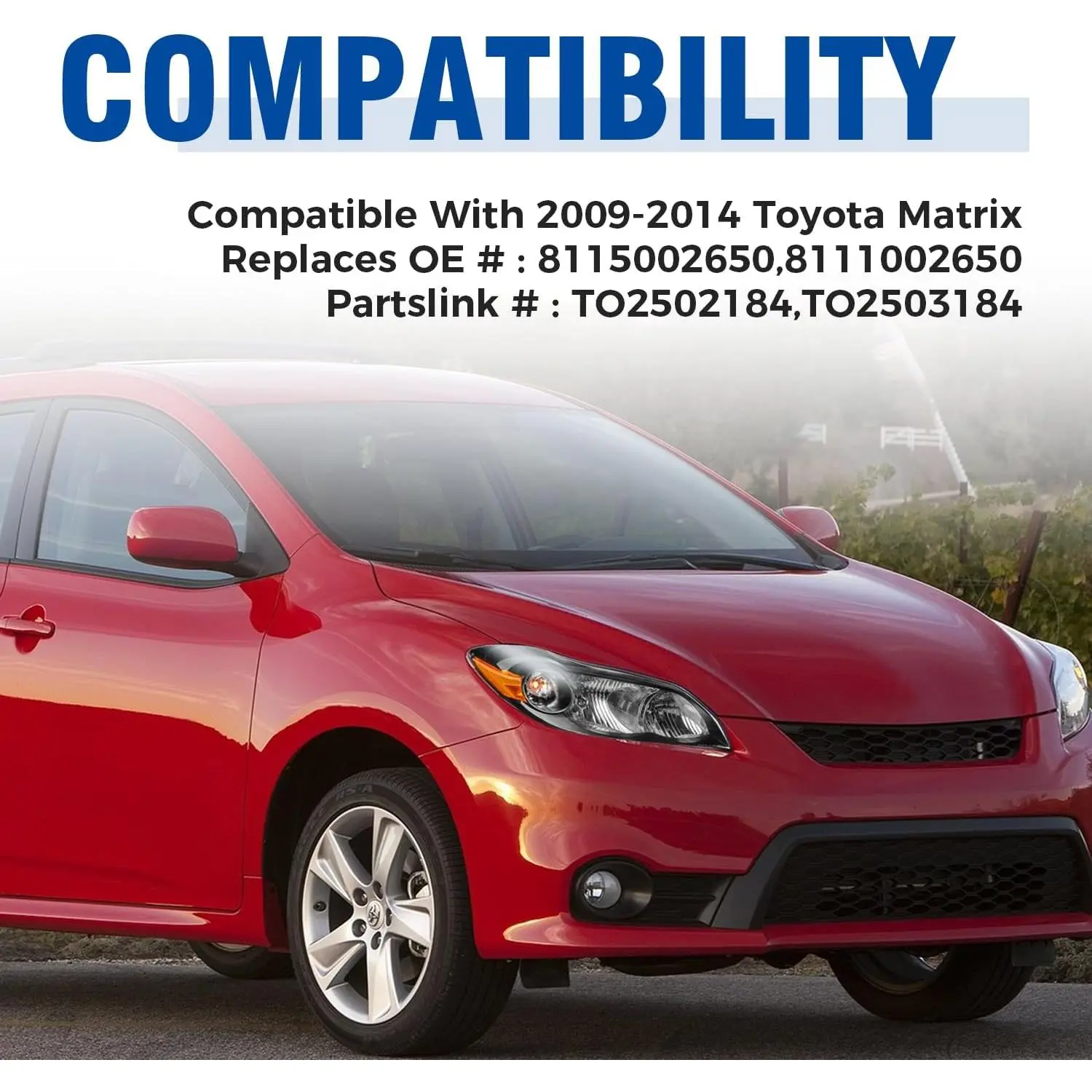 [Compatibility]: Fits for 2009 2010 2011 2012 2013 Toyota Matrix. Replacement Numbers: # TO2502184, TO2503184, 8115002650, 8111002650. Black housing & amber reflector design [DOT & SAE Approved]: New polycarbonate lens offers stronger shock resistance & scratch resistance than original. Sturdy Polypropylene housing resists impact and extends service life [Bulbs Included]: Package comes with both driver and passenger side headlight assemblies, pre-installed 9005 high beam & 9006 low beam and 3157A turn signal halogen bulbs [IP67 Waterproof]: Fully sealed with premium glue, passed strict air-tight and water immersion tests. IP67 waterproof/dustproof rating effectively keeps moisture, dust and fog out, even after heavy rain, car washes or extreme weather. Durable housing withstands road vibration, debris impact and temperature changes for long-lasting performance, avoiding the common issue of foggy lenses after harsh weather [Direct Installation]: Plug-and-play design, requiring no modifications. Installation is quick and easy