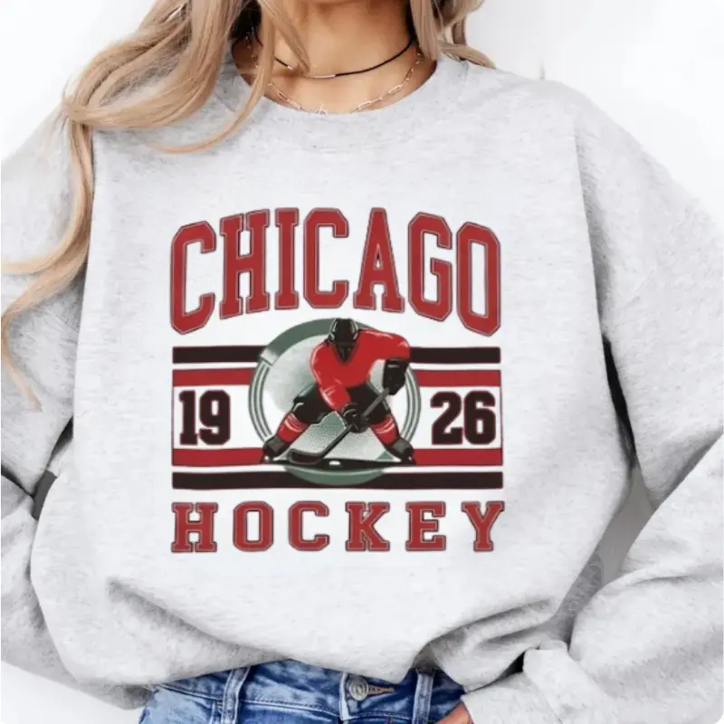 Vintage Hockey Graphic Tee Sports Hockey City - ASH GREY COLOR Sweatshirt Retro Sports Sweatshirt Casual Hockey Game Top - BM
