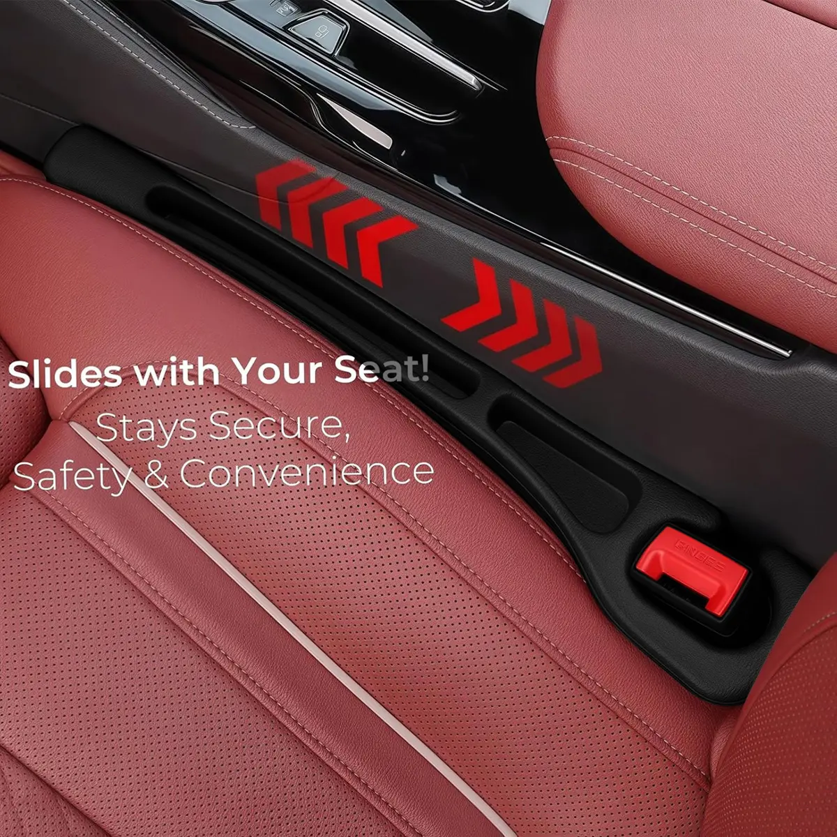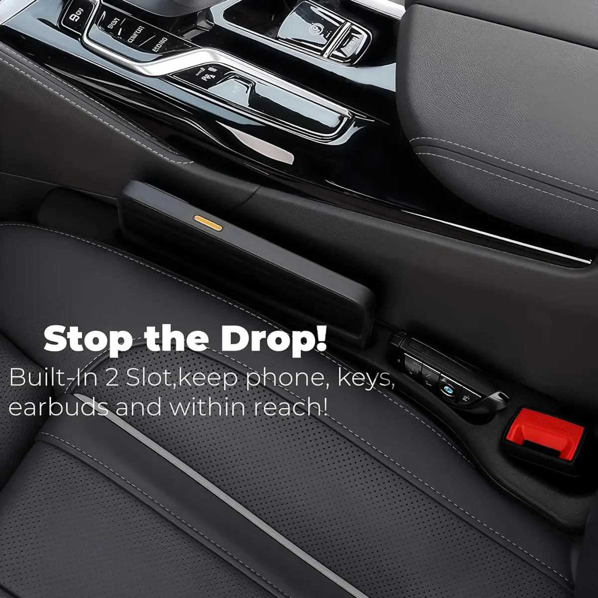 【Easy to install】: Just insert it into the gap of the car seat as shown in the image.(the straight side with the opening is on the console side) It can follow the car seat to move back and forth.