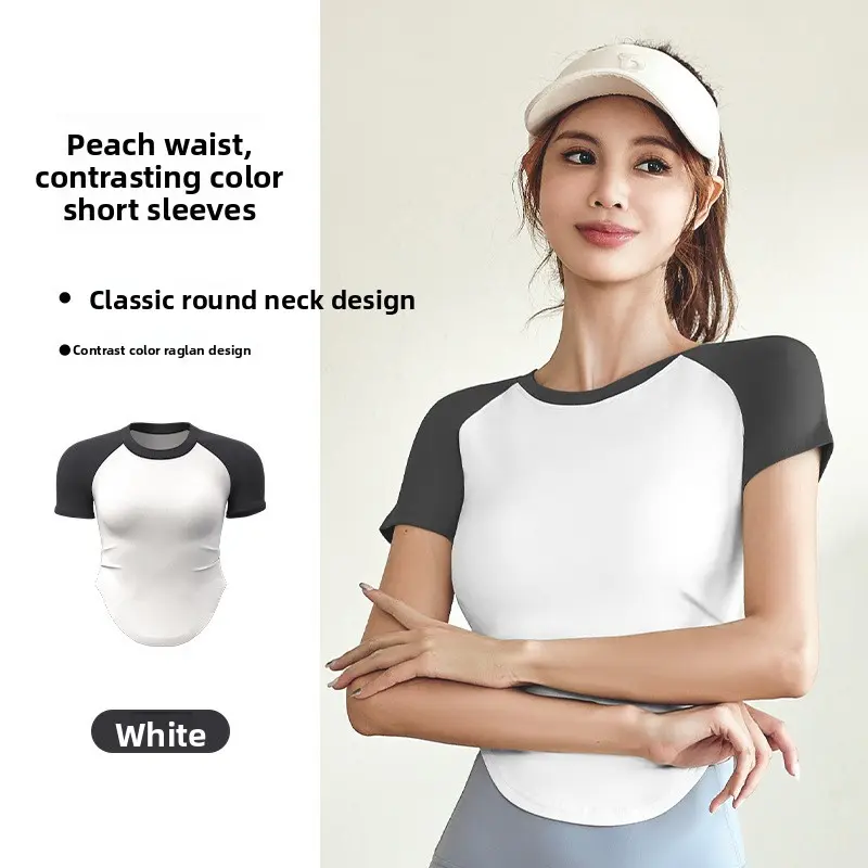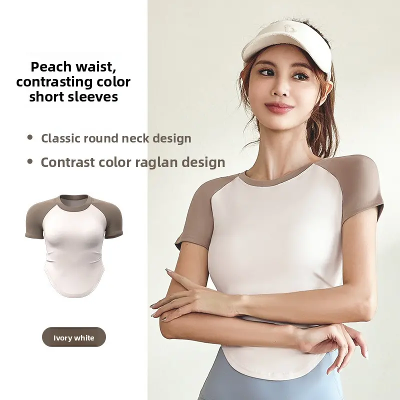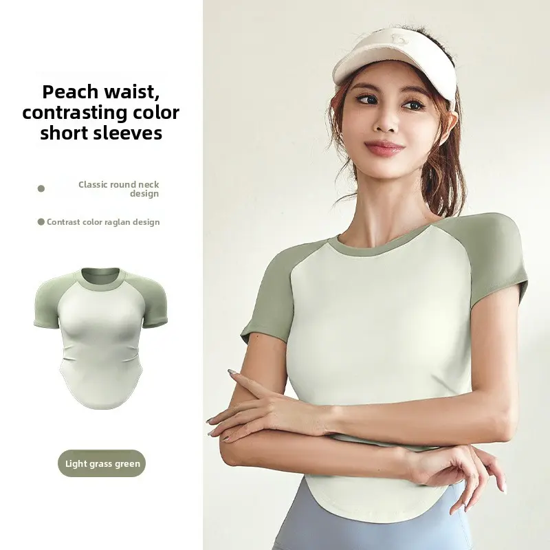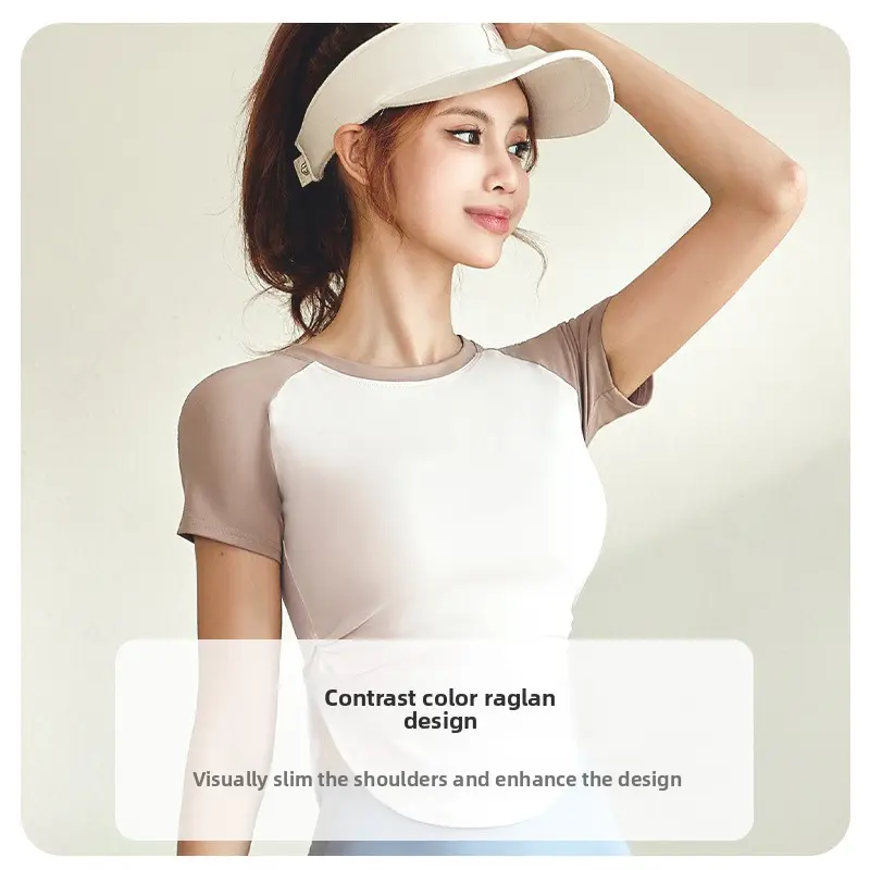 Contrast color pleated yoga top for women, waist-cinching, slimming, with a nude feel, suitable for yoga, sports, and outdoor fitness