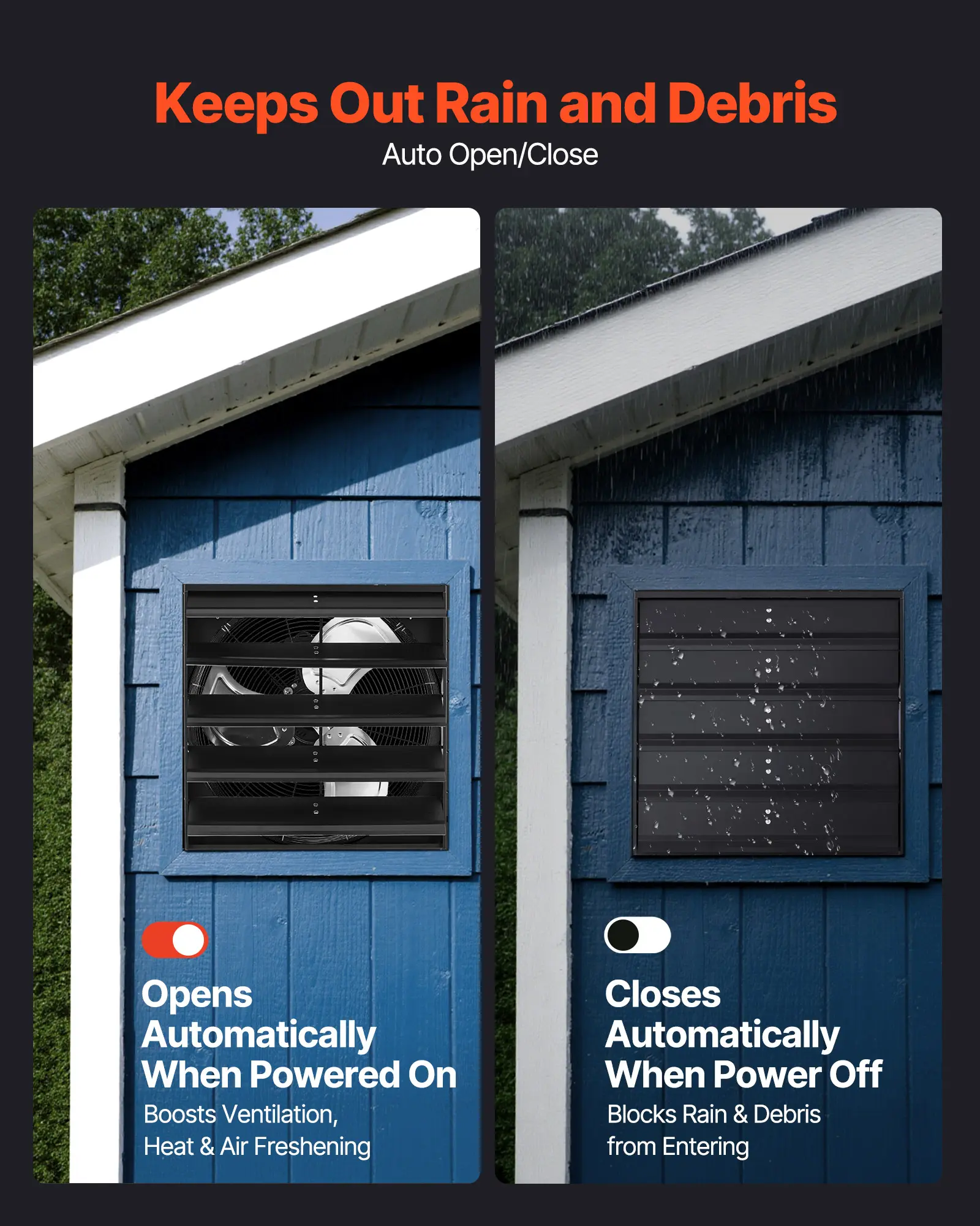 Rain Guard: Shutters open when powered for ventilation and deodorizing, then close when off to block rain and small things, reliable protection for an attic exhaust fan setup