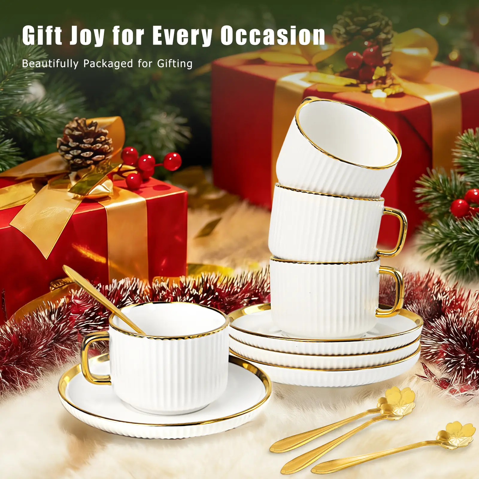 【Luxury Gift】This design blends luxury and modernity, suitable for diverse occasions. It makes the perfect gift for birthdays, Christmas, housewarmings, weddings, tea parties, anniversaries, and more—ideal for friends, family, and coffee enthusiasts. Features comprehensive shatterproof packaging to ensure delivery.