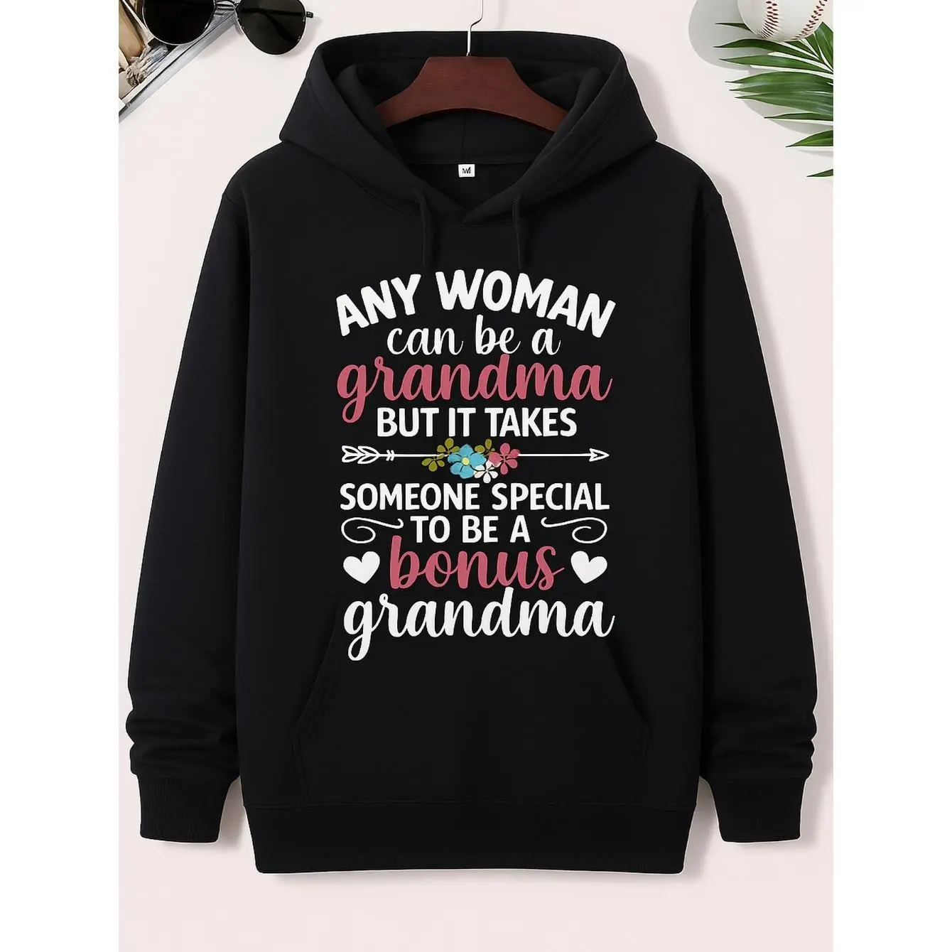 Women's bonus grandma appreciation, family love, and emotional connection Graphic Hoodie - Long Sleeve Pullover Regular Fit | Soft & Breathable Fabric, Durable Print, Everyday Comfort, Machine Washable, casual and cozy with a sentimental design featuring