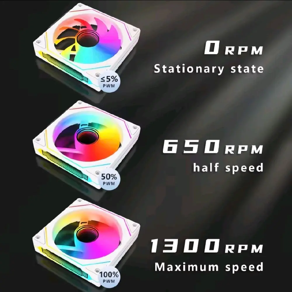 ·Triple Infinity Mirror Design: Standard RGB fans only light up the blades. The Prism 4 Pro features deep-well infinity mirrors on the center and the edges, giving your case a futuristic, high-end "boutique" look.