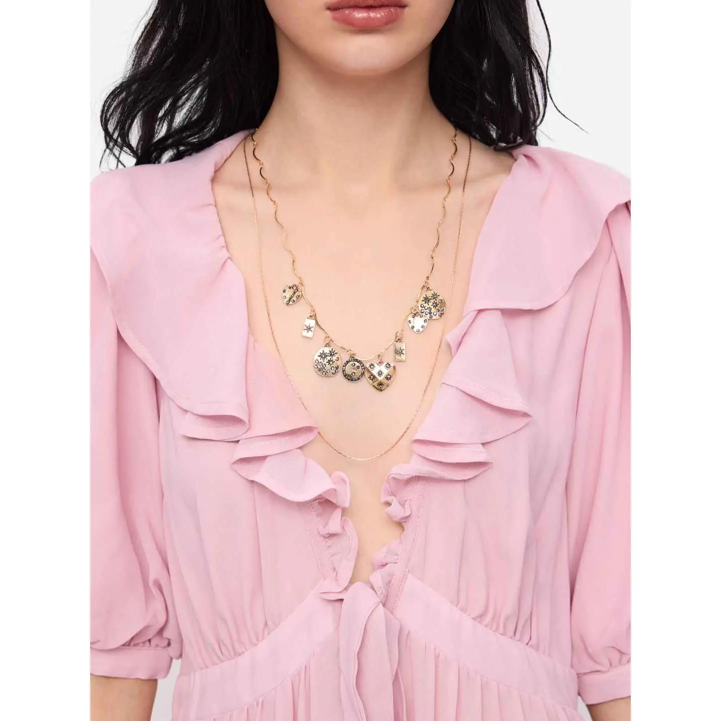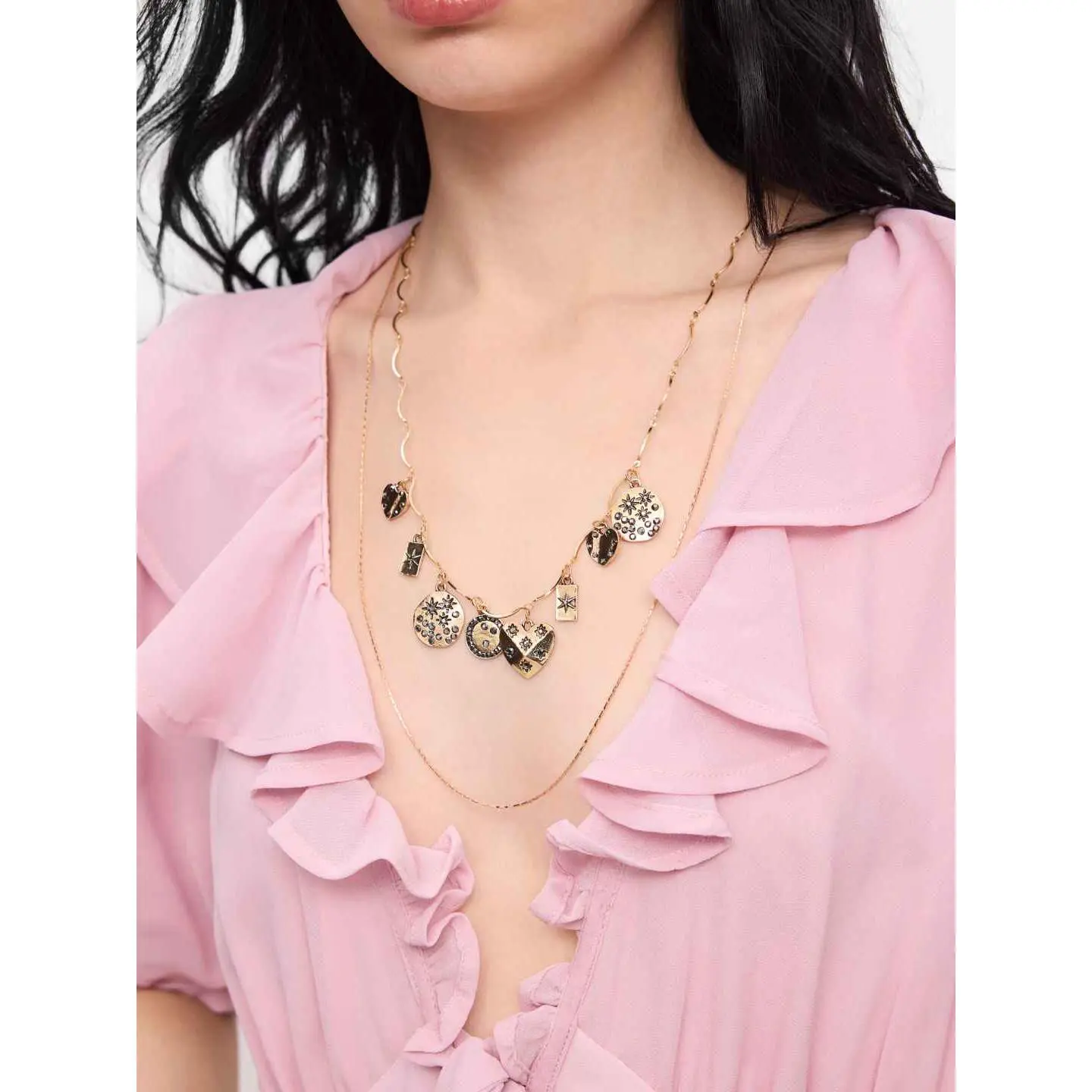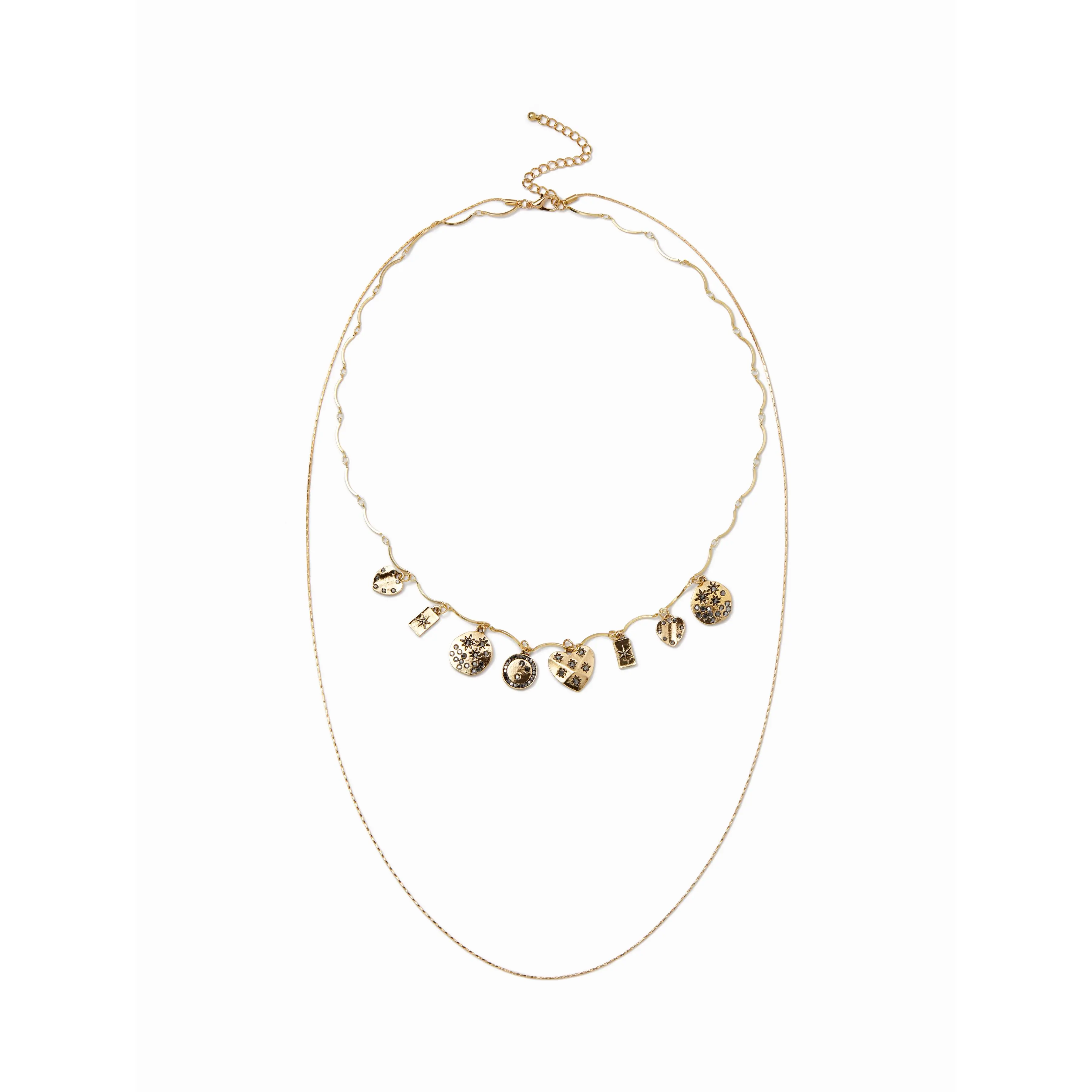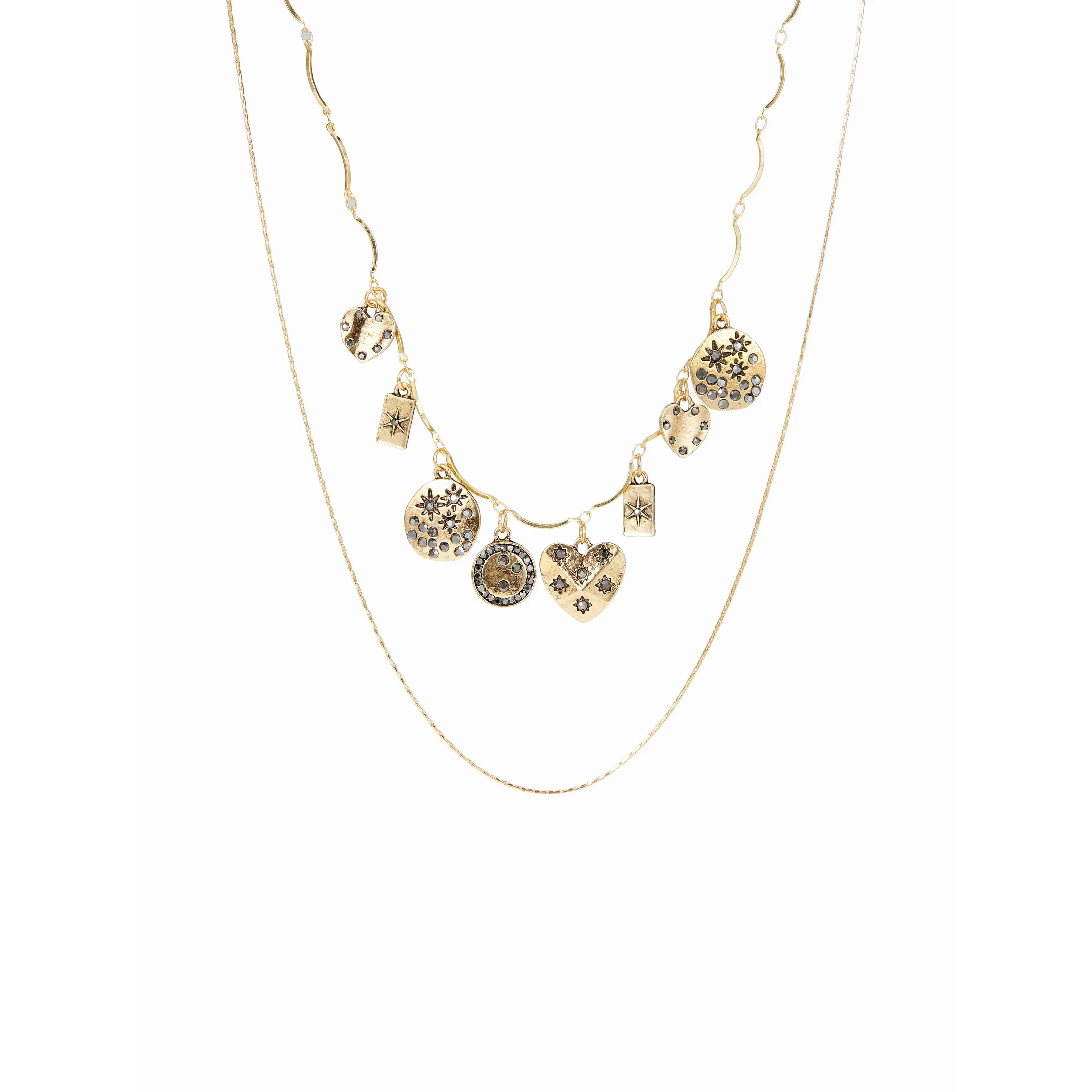 5. Cider HEART & RHINESTONE LAYERED NECKLACE