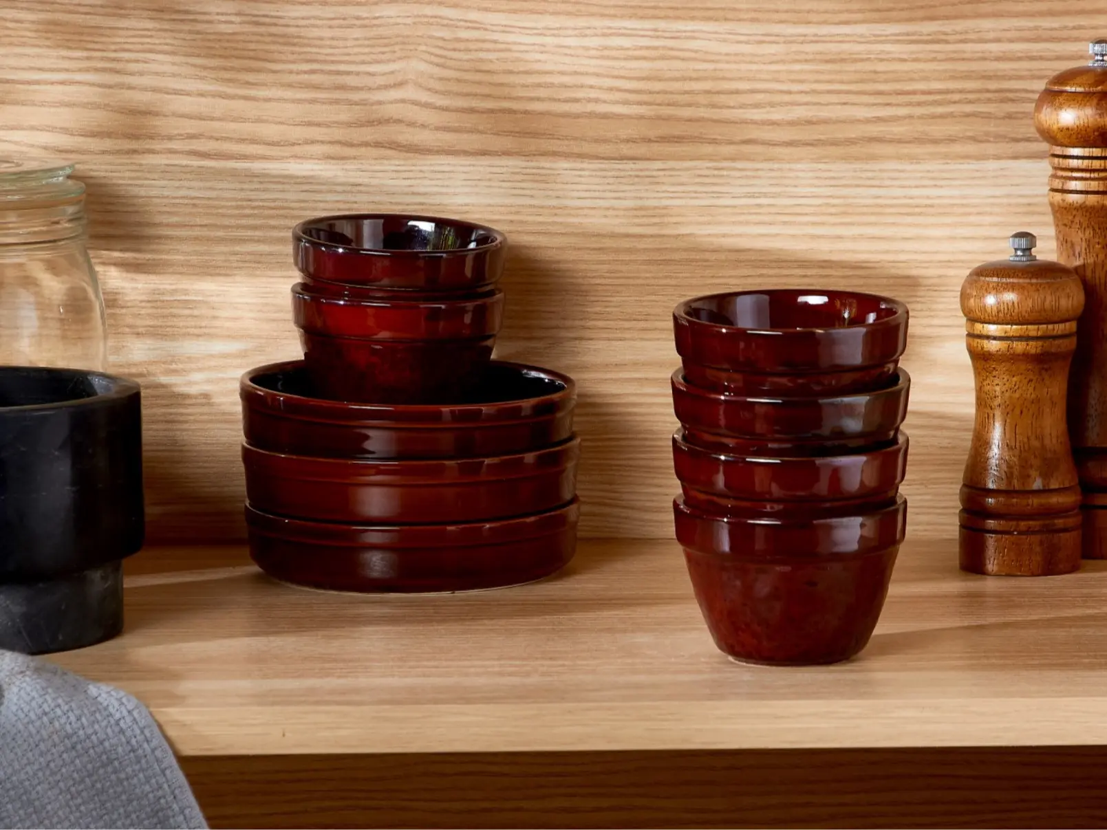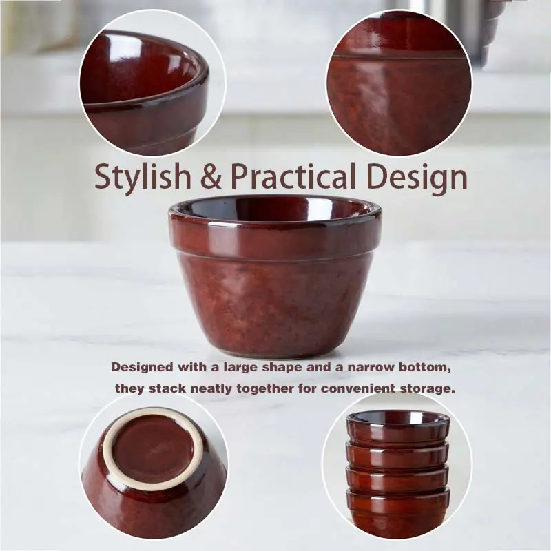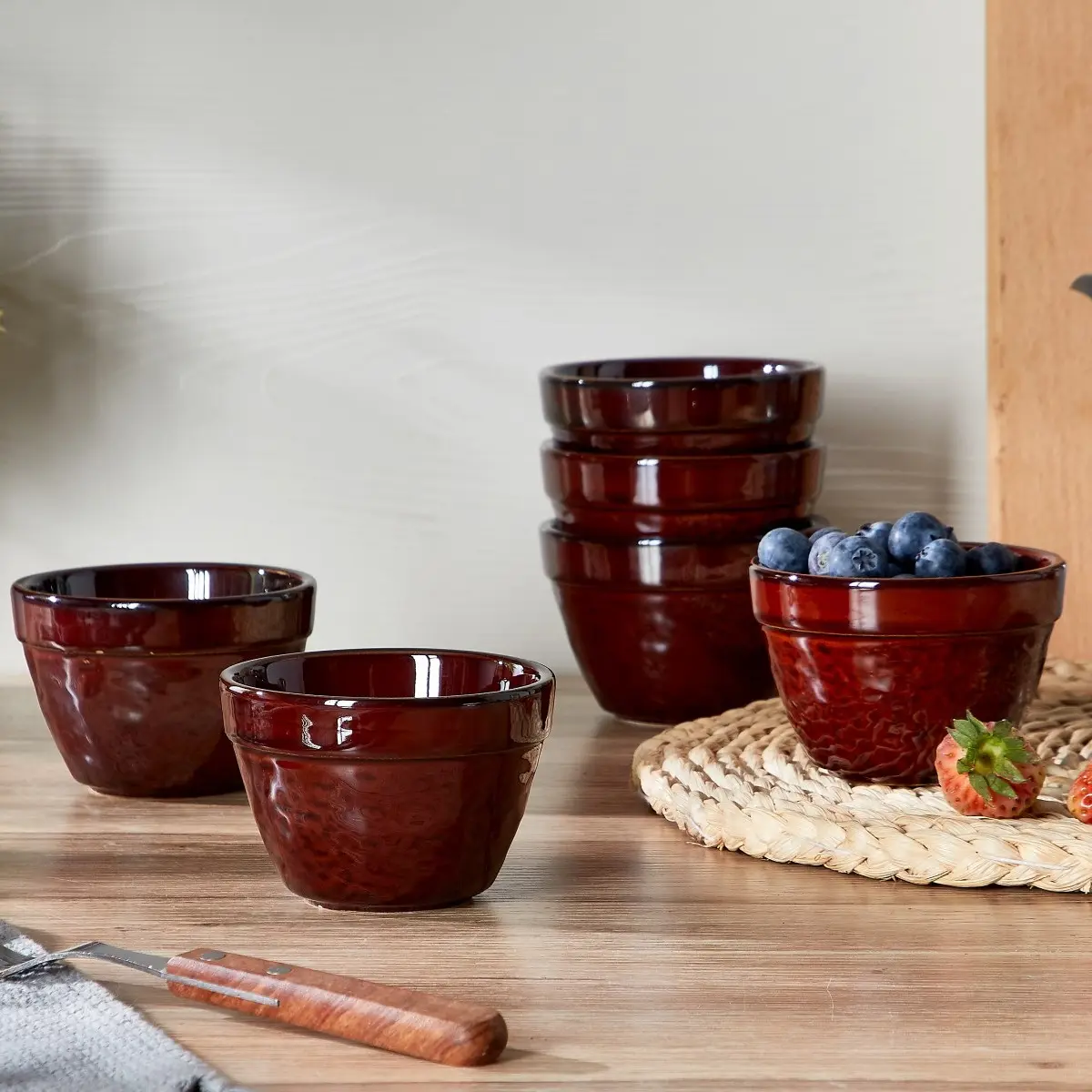 3.5" Brown Ceramic Ramekin Set of 6, Stackable Oven-Safe Bowls for Baking & Dips