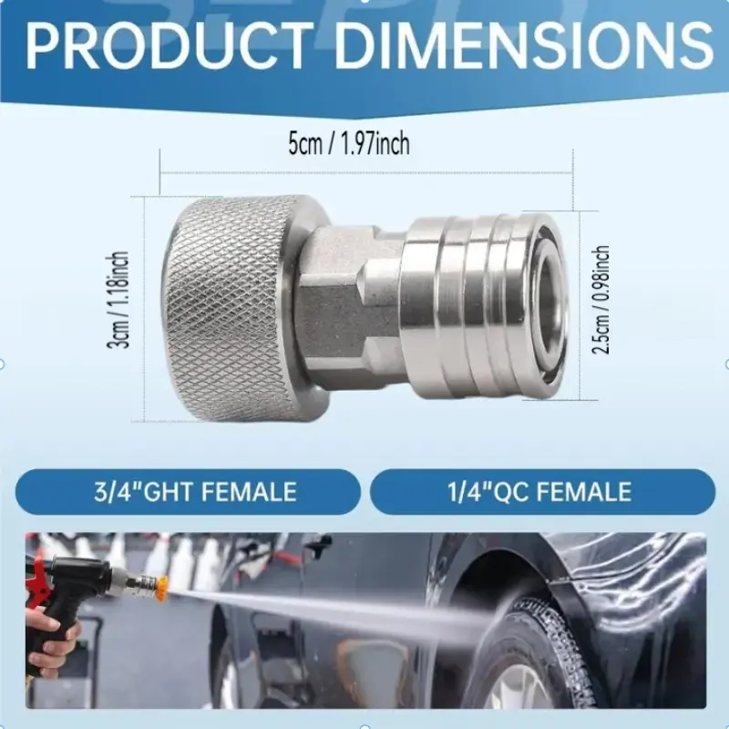 Hose to Pressure Washer Adapter, 3/4" GHT to 1/4" Quick Connect, Hose to Power Washer Connector,Stainless Steel Construction for Car Wash Nozzle and Sprayer Attachment