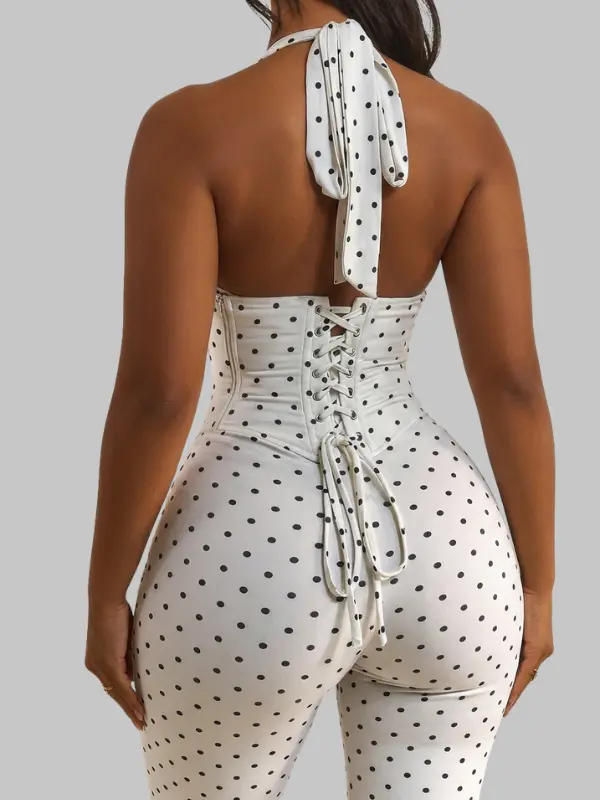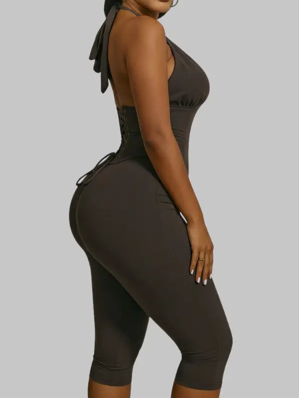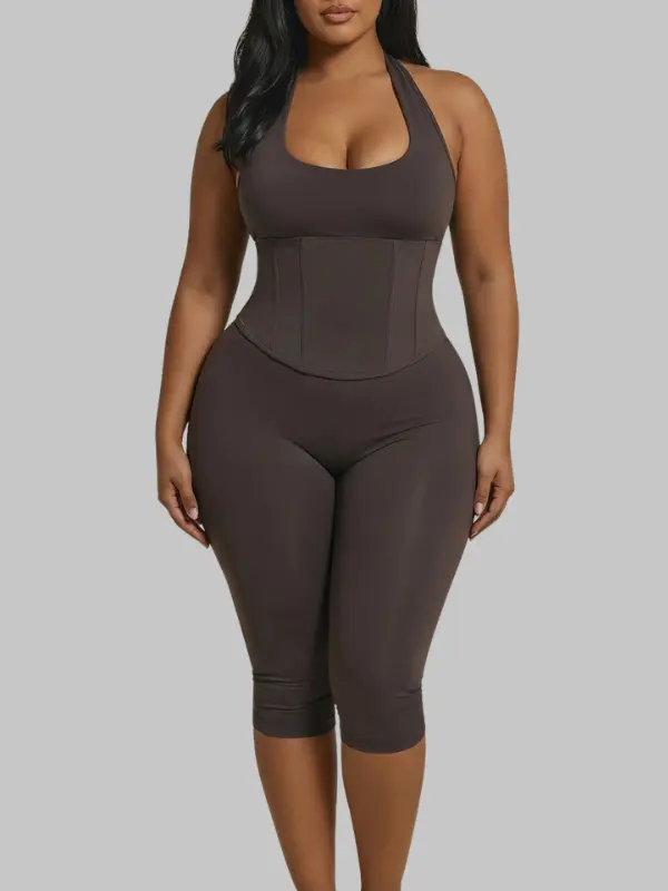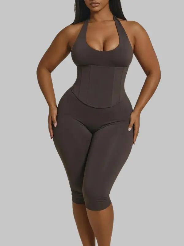 This sculpting halter jumpsuit is designed to shape your body, enhance your curves, and give you that perfect hourglass look — all while staying comfortable and flexible.