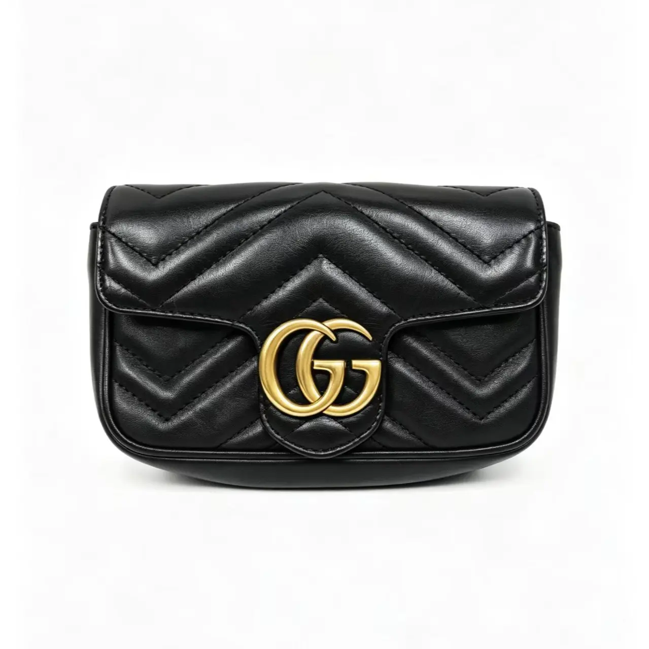 Pre-owned france Crossbody Bags Gucci Marmont mini 22 Black Gold(SZ H04136)