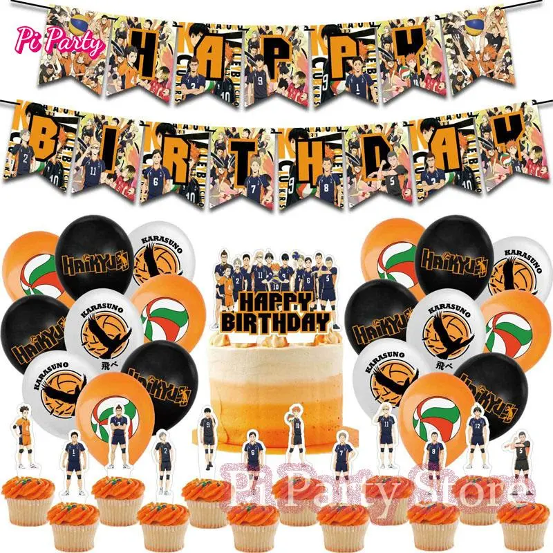 Haikyuu!! Birthday Party Decoration Set Haik Yu Volleyball Boy Pull Flag Cake Size Signage Balloons and Other Party Supplies