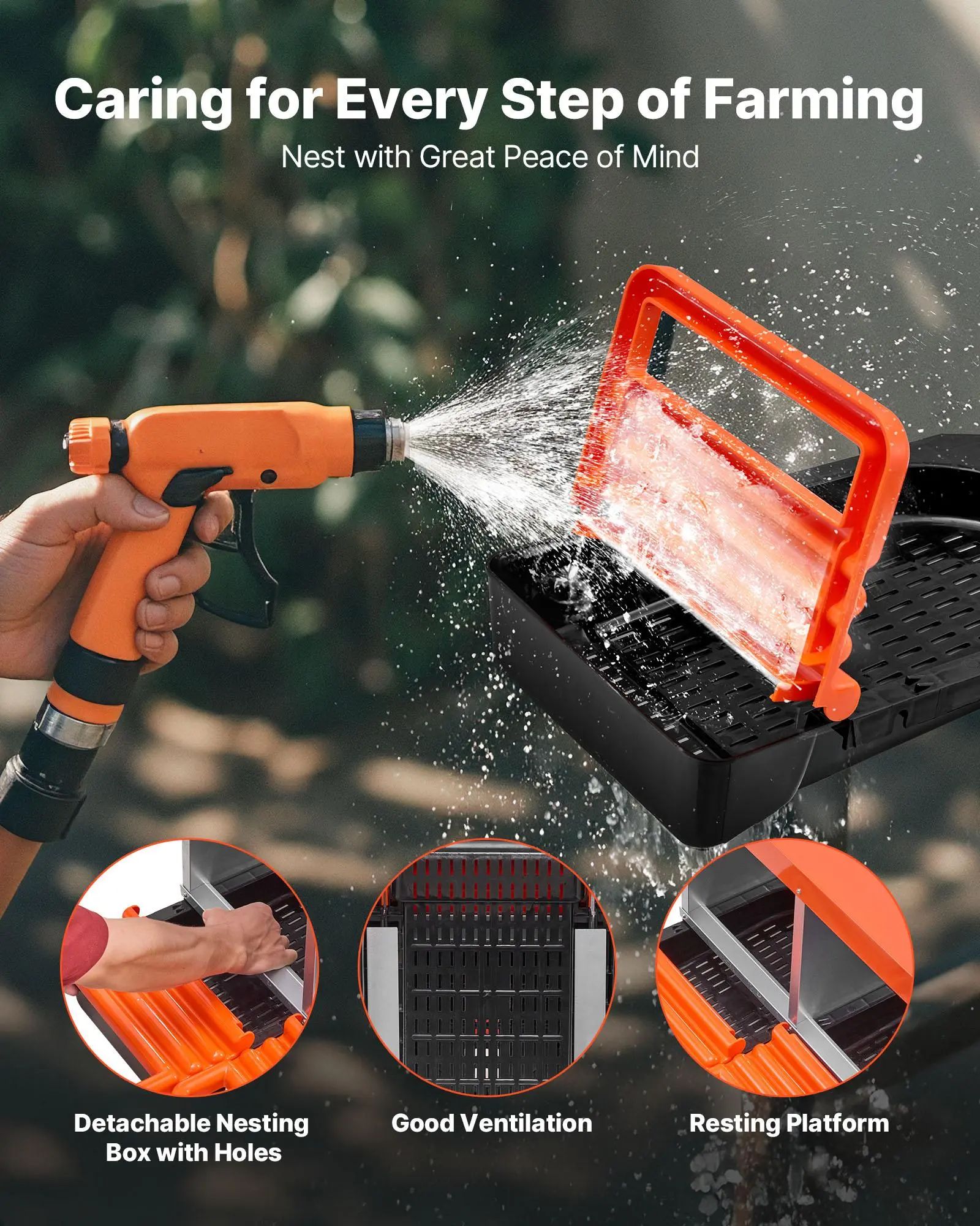 Easy to Clean: These nest boxes for chickens come with drainage holes to avoid water buildup and let debris fall through. They have a detachable tray for quick cleaning, ventilation holes for fresh air, and a resting platform for chicken entry