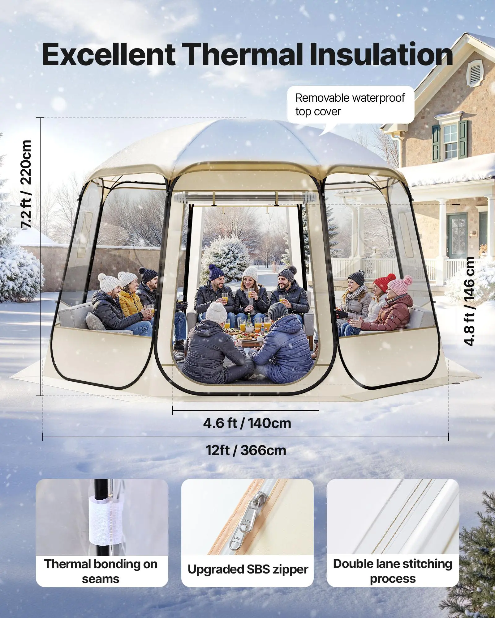 Pop-Up Transparent Structure: Easily sets up this pop up bubble tent in seconds with a quick pop-up design. Enjoy a 540° panoramic view and fully immerse yourself in the natural surroundings. Note: This pop up tent is suitable for cool autumn and winter use, not recommended for hot weather. Note: Not recommended for use in heavy rain, strong winds, or snowstorms.