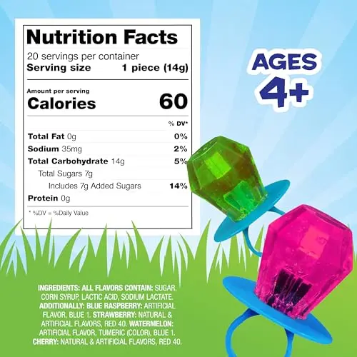 EASTER CANDY: Unwrap the fun with our iconic wearable hard candy lollipop ring with an eye-catching candy gem. Perfect for Easter parties, gift baskets, and candy bowls