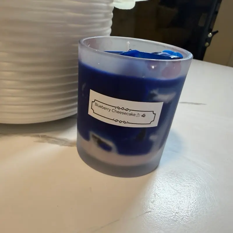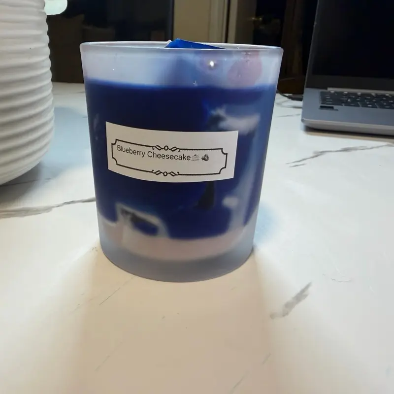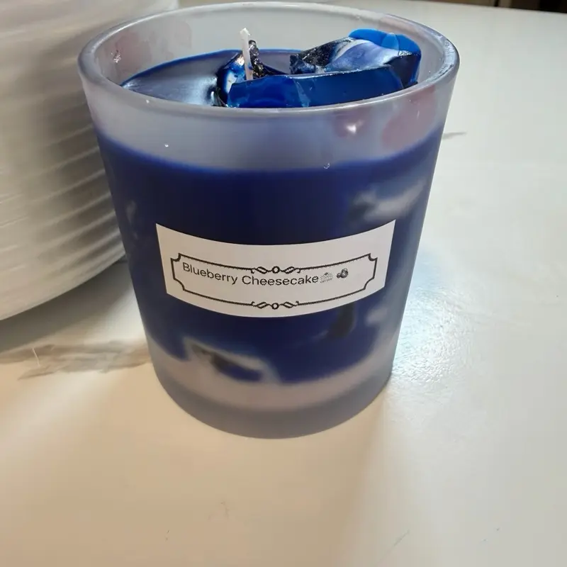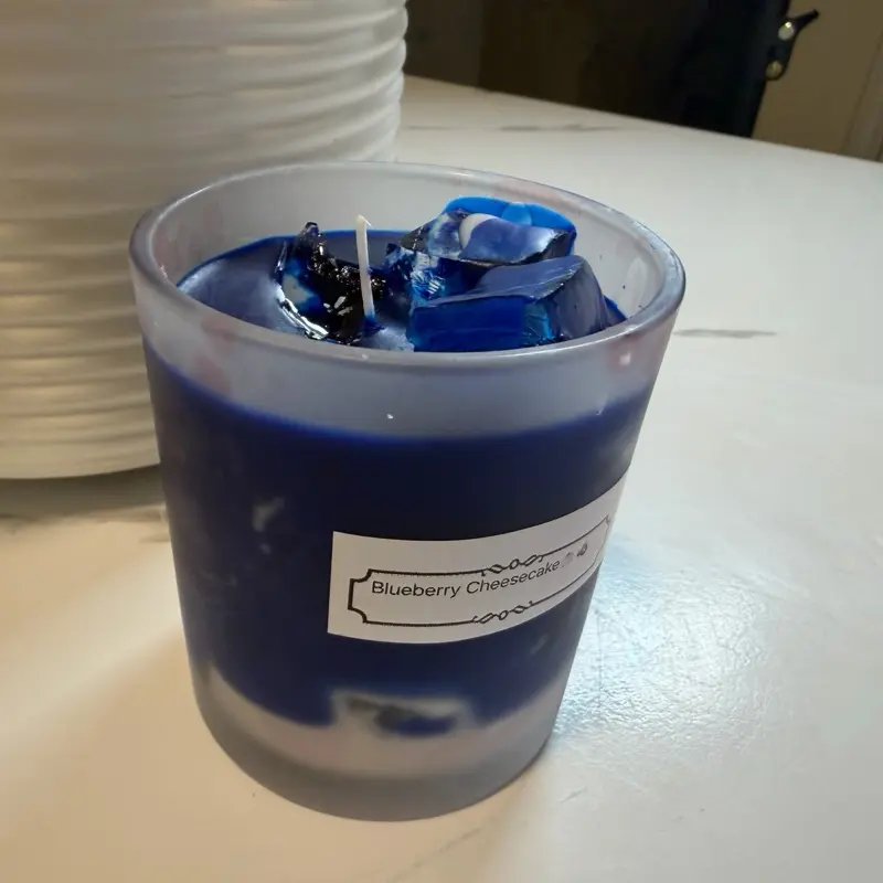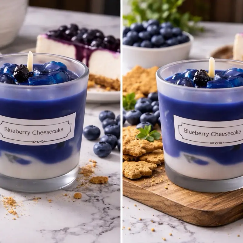 Indulge in the sweet, creamy aroma of our Blueberry Cheesecake Candle 🫐🍰
