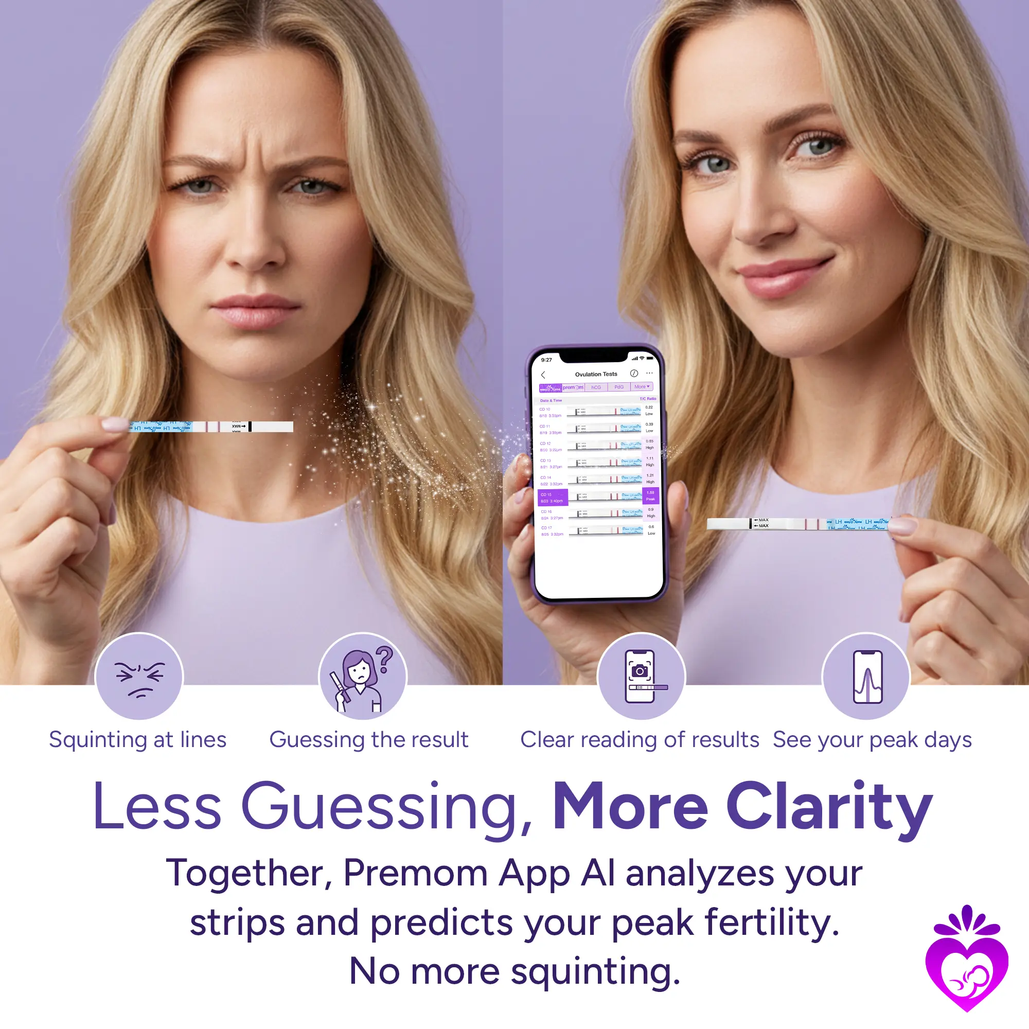 ·Smart App Integration: Dip the ovulation test, wait, and snap a picture. The Premom App logs your tests for visible progression tracking, helping you predict peak fertility without saving messy strips.