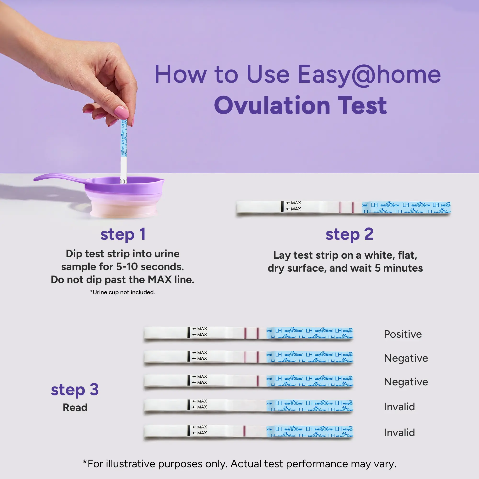 ·Clear LH Detection (Ovulation Tests): Detects Luteinizing Hormone levels as low as 25 mIU/mL within 5 to 10 minutes. A test line as dark as or darker than the control line indicates a positive result.