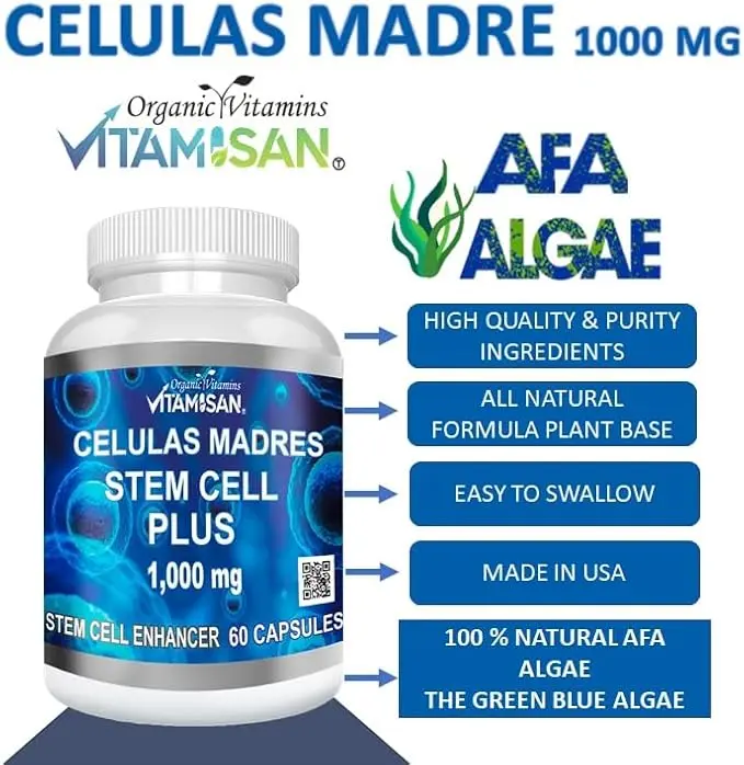 Celulas Madres 60 Capsules Vitamisan 1000 mg Aphanizomenon Flos-aquae Blue Green Algae AFA Stem Natural Cell