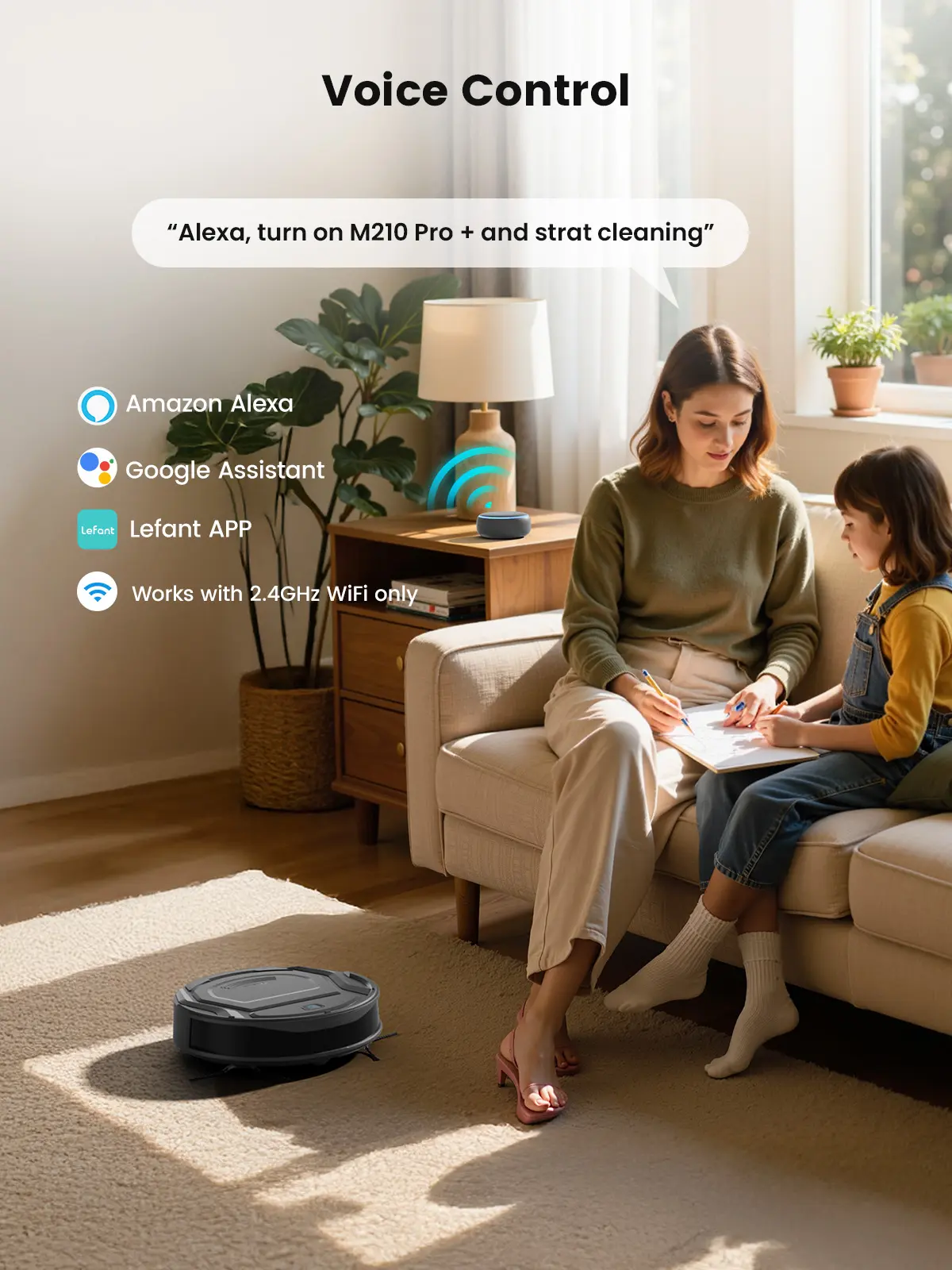 ·App & Voice ControlSchedule, switch modes, adjust suction anytime via Lefant App. Works with Alexa & Google Assistant.