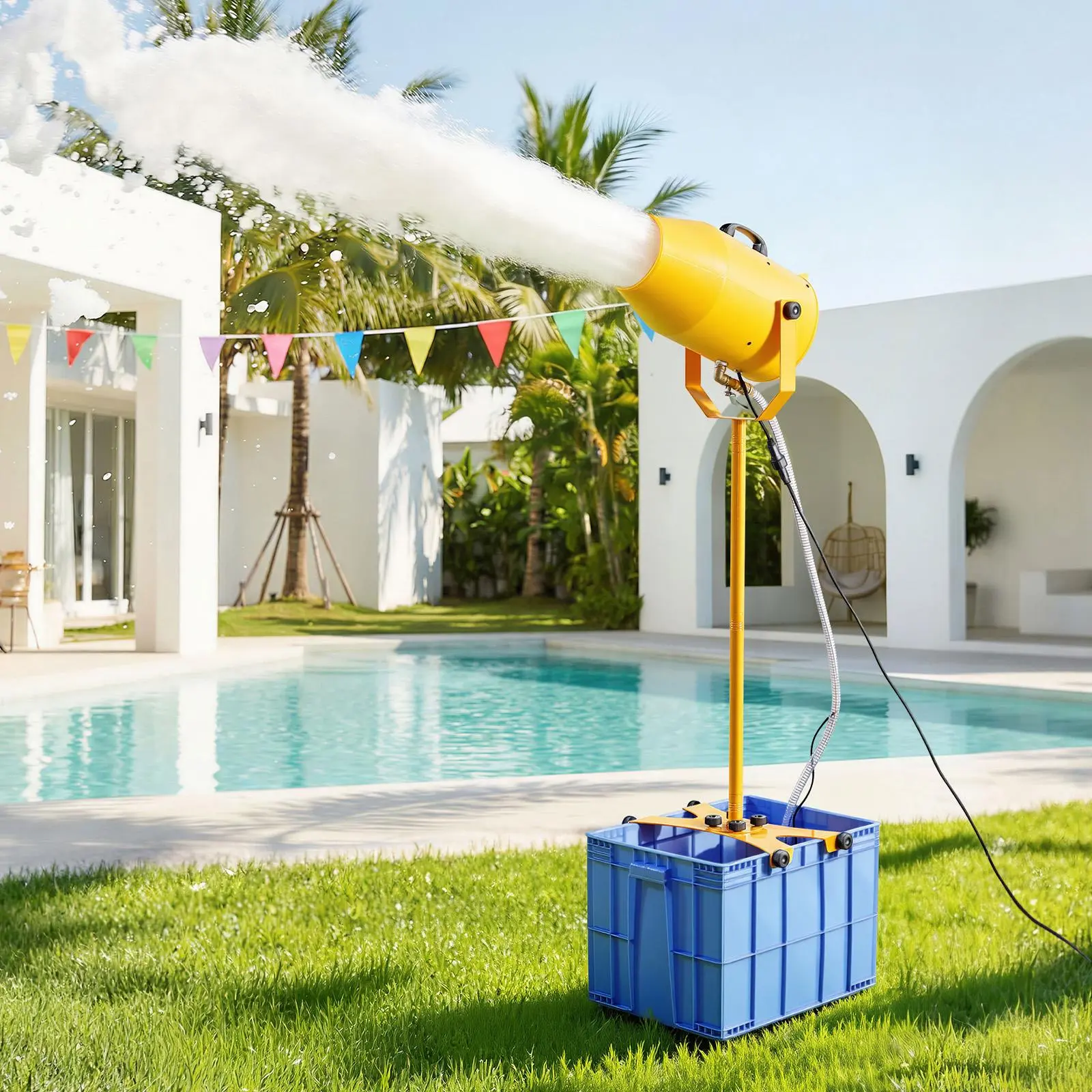 Smooth User Experience: Foam angle adjustment allows accurate control of where foam falls, enhancing party arrangement and appearance. The external control box includes an indicator light and one-touch switch for easy operation. Simple setup and complete accessories make this foam maker cannon suitable for new users, parents, and rental use