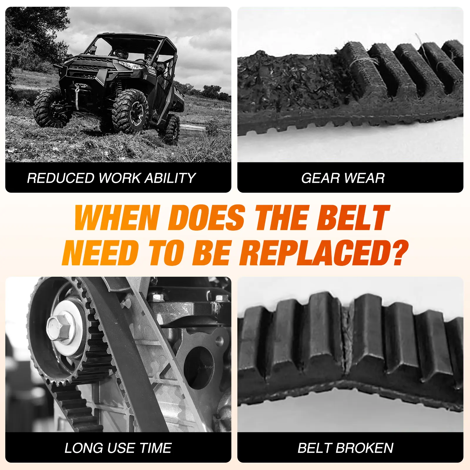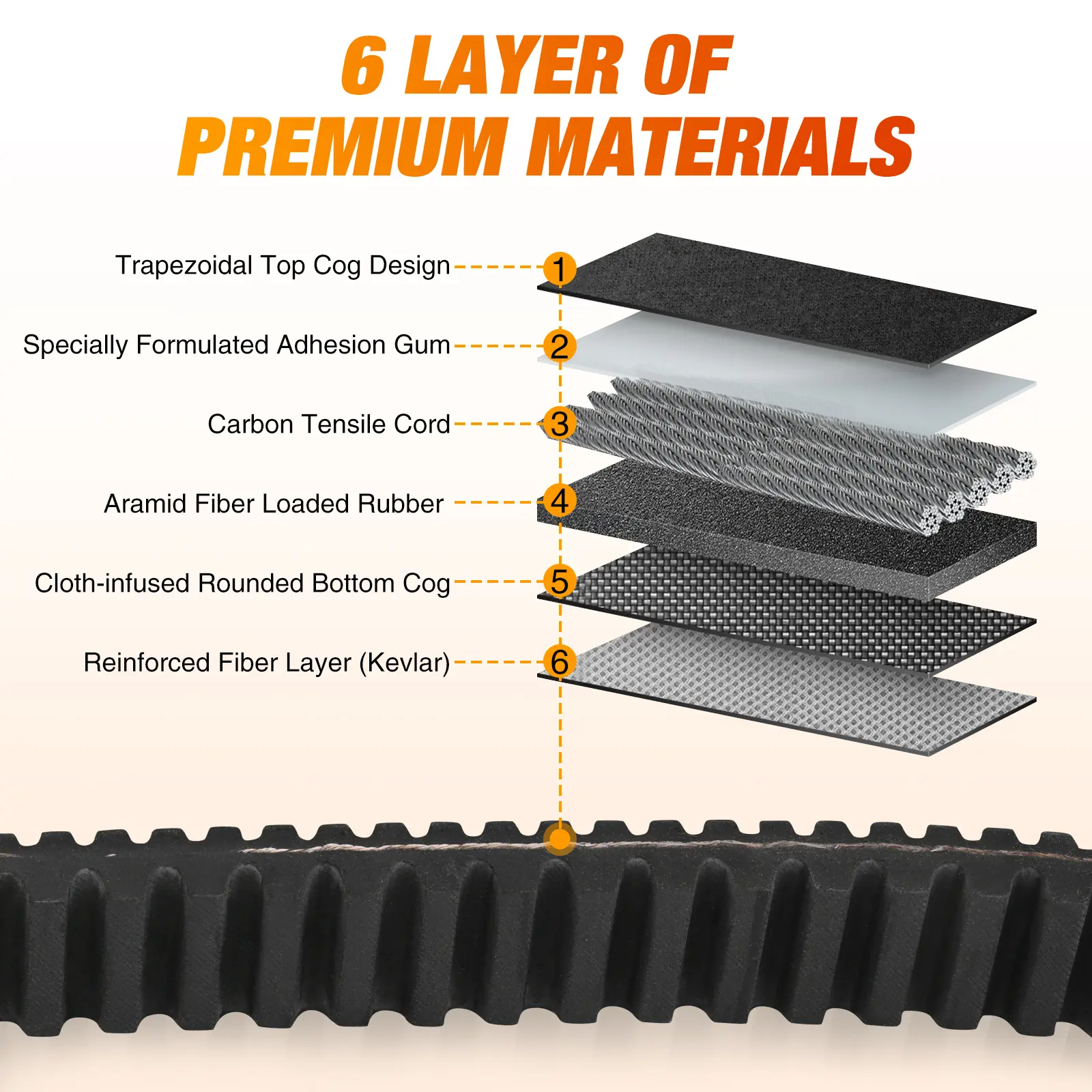 ·PERFORMANCE BELT: The CVT drive belt's tooth surface is wrapped in highly durable nylon fabric to prevent slipping, reduce noise and improve transmission efficiency. Its middle layer is made of aramid cord and high-strength rubber composite material, with a six-layer material design that can withstand higher clutch compression pressure. It has excellent high-temperature resistance, wear resistance and flexibility, durability, not easy to break or shatter, making it an ideal replacement for old belts