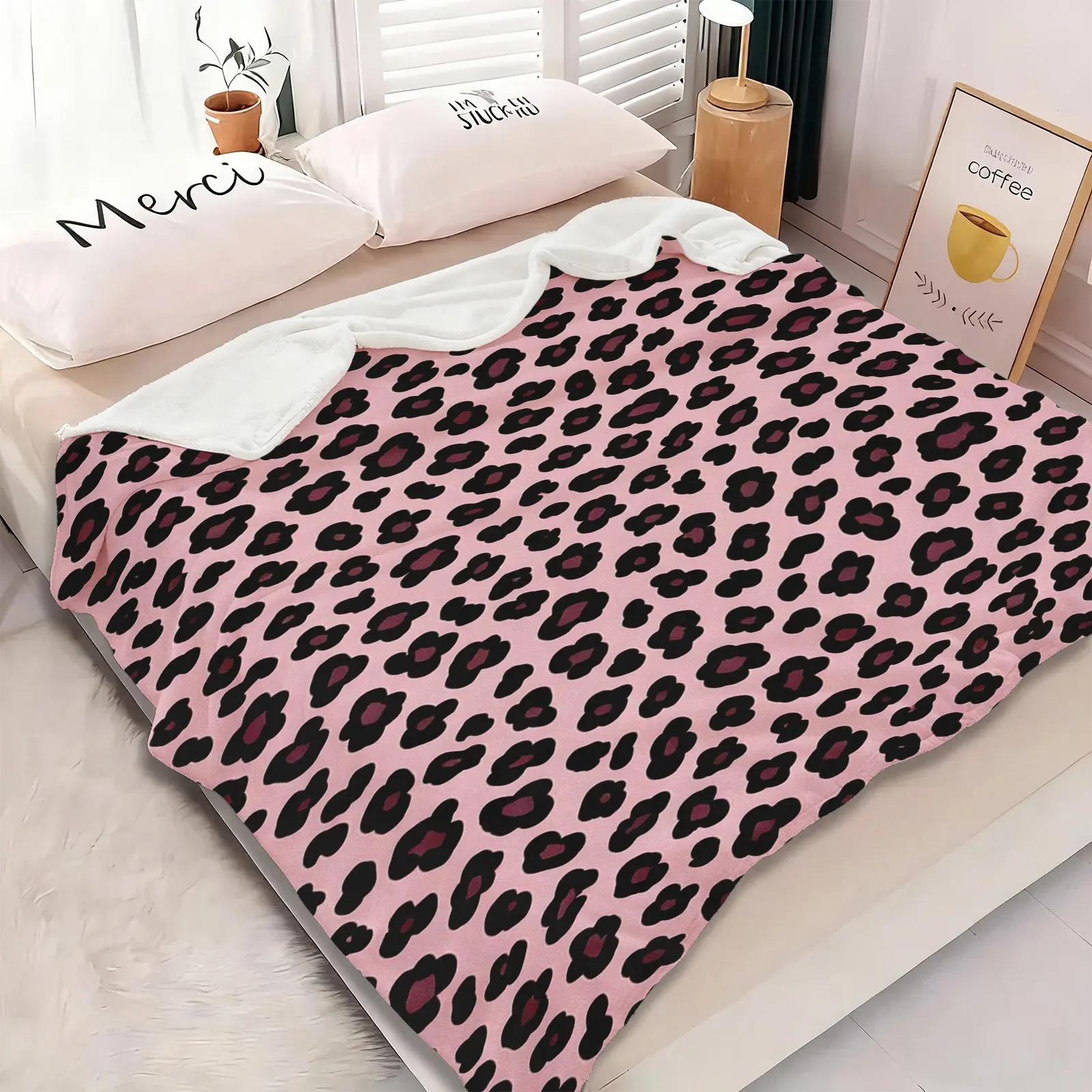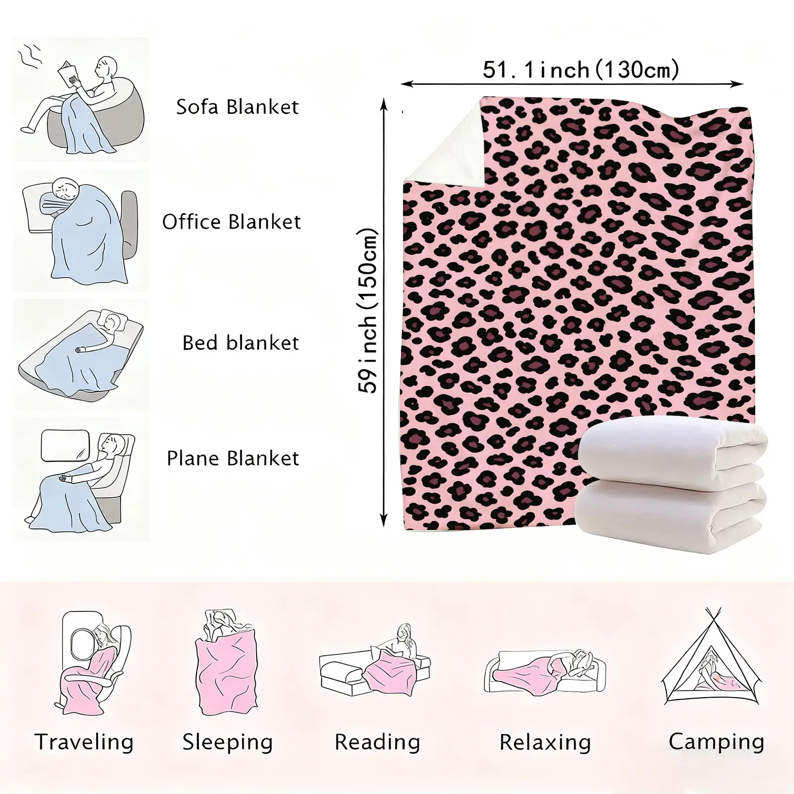 Pink Leopard Print Flannel Throw Blanket, Soft Cozy Cheetah Pattern Blanket, Warm Aesthetic Decor Throw for Couch, Bedroom, Ideal Gift for Teen Girls, Women