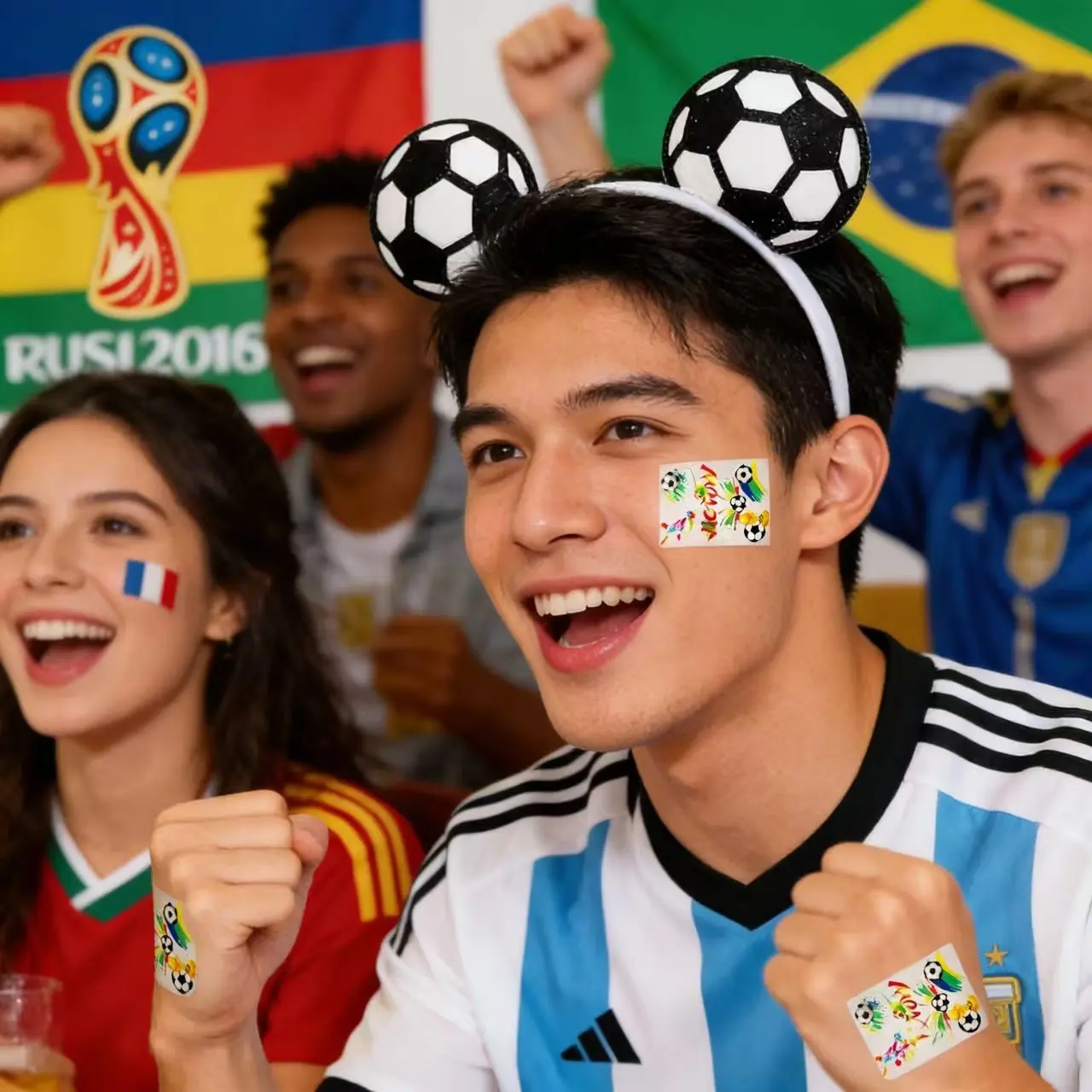 Gear up for the big game and show off your soccer fandom with our World Cup Soccer Ear Headband & Earrings Set! Designed with iconic soccer ball details and glittery accents, this set is the ultimate game day accessory for women, girls, and football enthusiasts. Whether you’re cheering at the stadium, watching from home, or hosting a watch party, these playful pieces add a fun, festive spirit to your look.