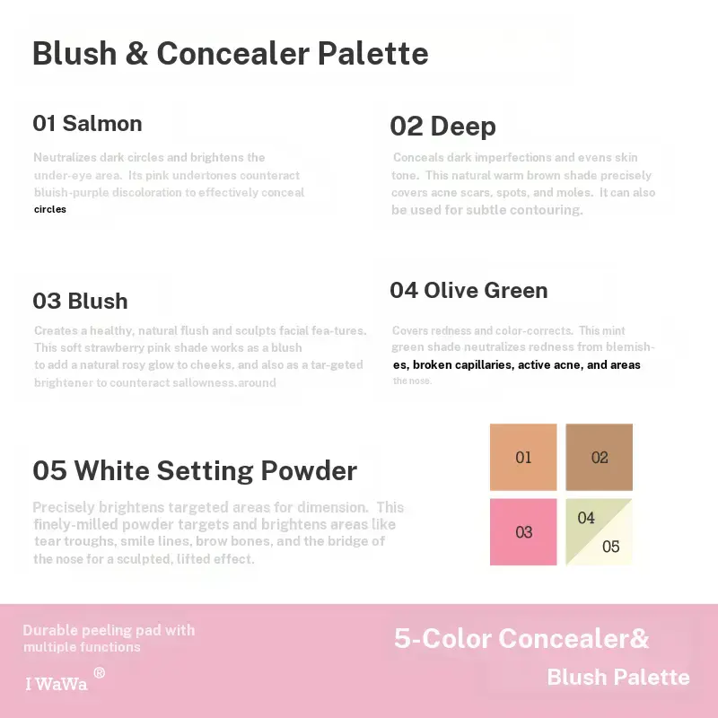 【I WAWA】Stain Concealer & Blush Palette (5 Colors) | Flawless Skin in One Palette