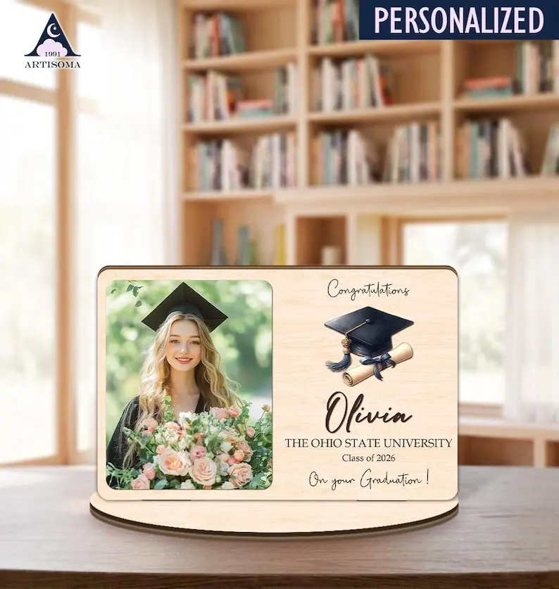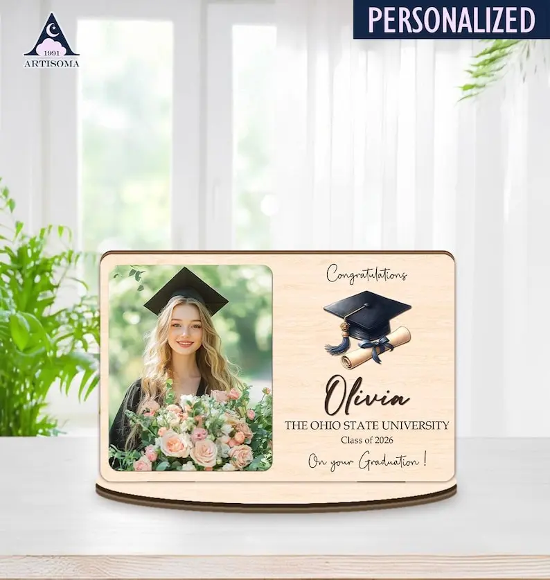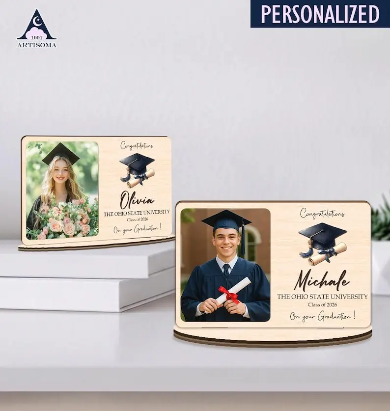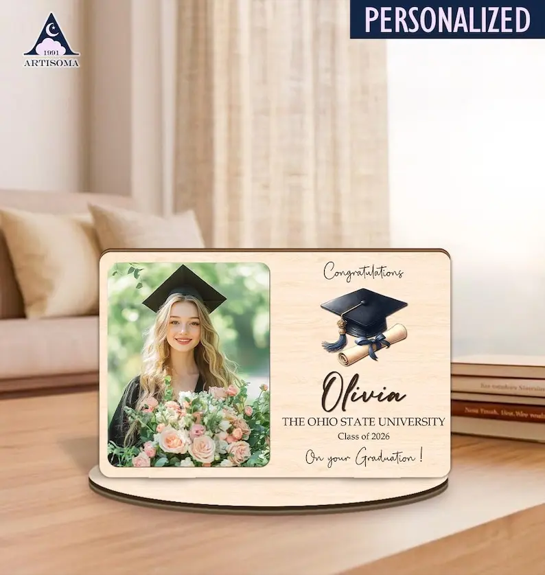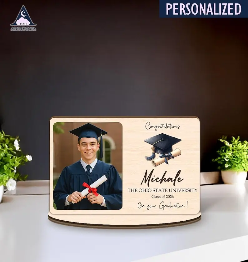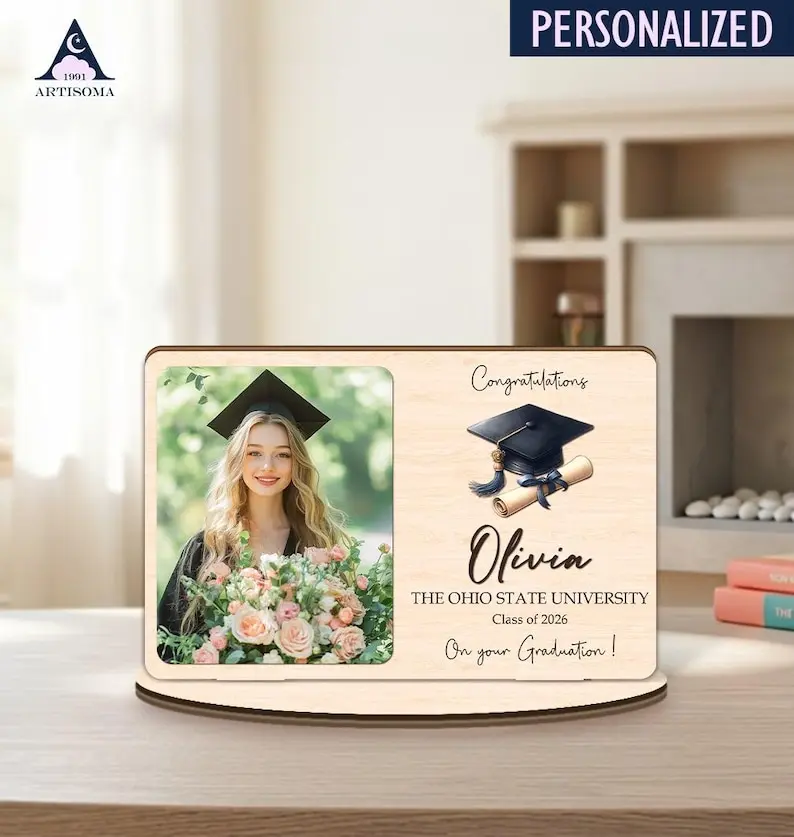 Celebrate a proud milestone with this Personalized Graduation Photo Wooden Stand, a meaningful keepsake designed to honor the Class of 2026. Featuring your custom photo, name, school, and graduation message, this unique display turns special memories into a lasting treasure.