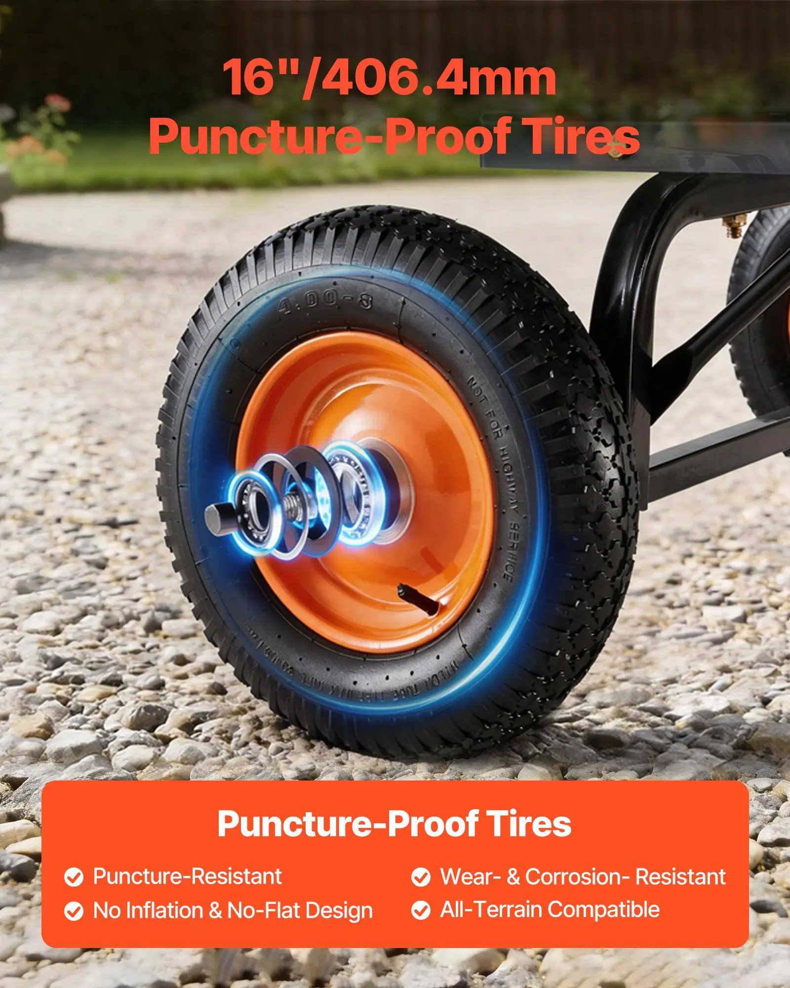 Light Tray Handling: Built with a PP tray, this VEVOR gardening wagon stays light and manageable, offering smoother control than metal options and steady outdoor durability. Dirt, grass, and fertilizer wash off with a quick rinse, reducing effort and making routine care more relaxed